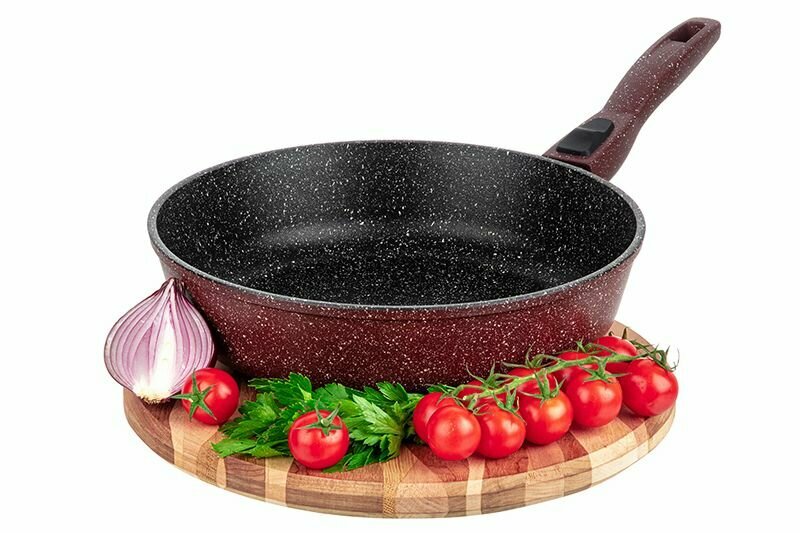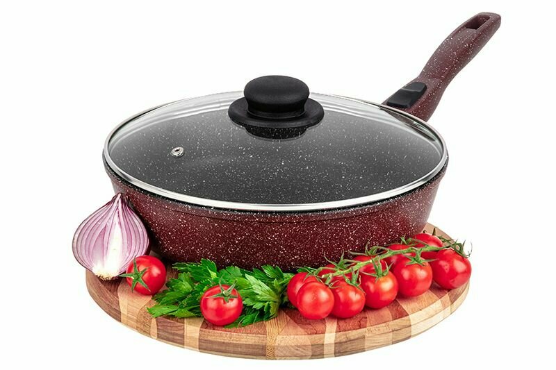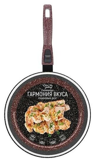 Сковорода глубокая 26 см Elan Gallery гармония вкуса Рубиновый дуэт с крышкой D26, со съёмной ручкой интересное: