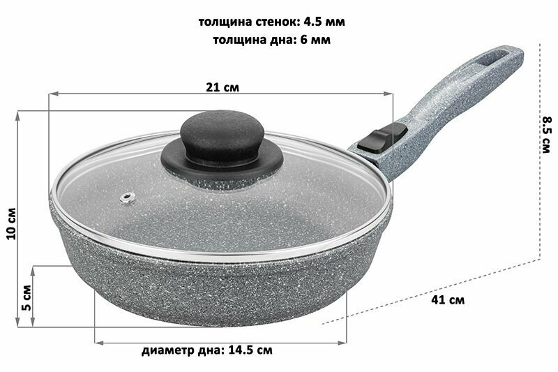 | Комплектация | сковорода, стеклянная крышка, съемная бакелитовая ручка |