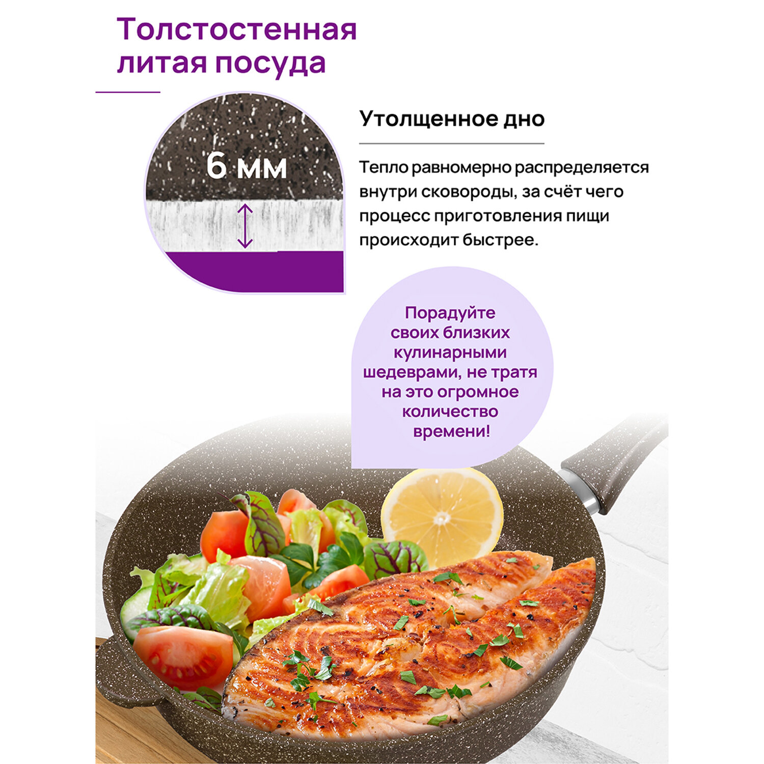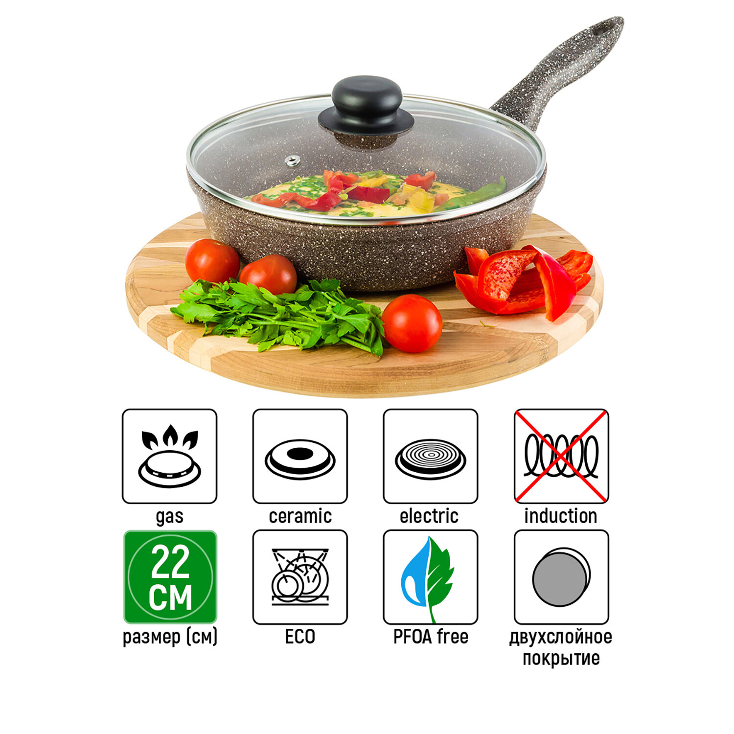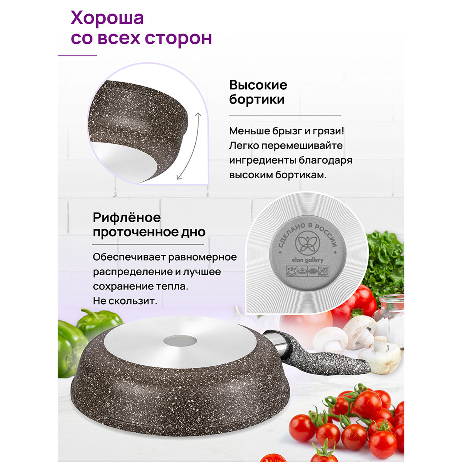 Сковорода глубокая 22 см Elan Gallery гармония вкуса Коричневый опал с крышкой D22, с несъёмной ручкой интересное: