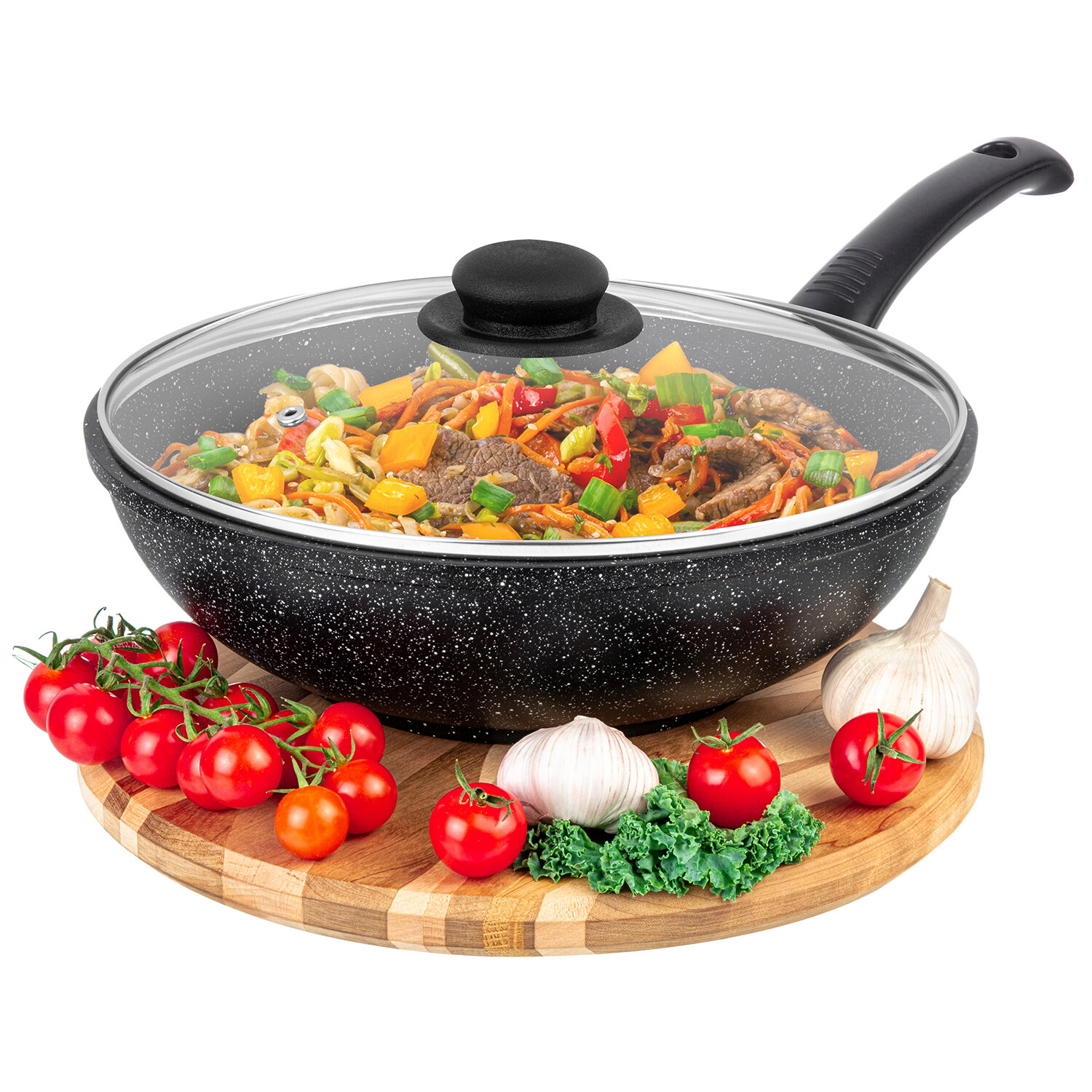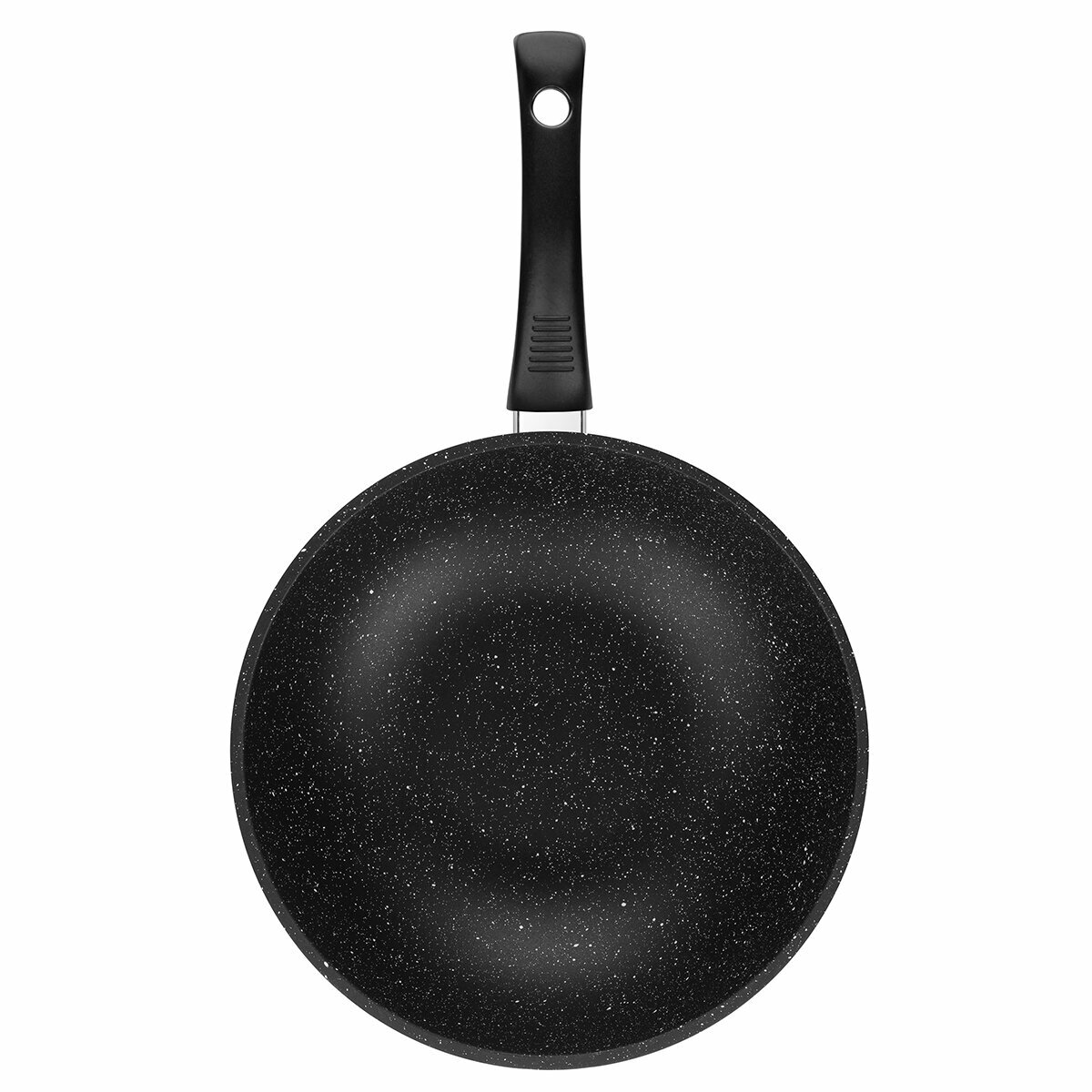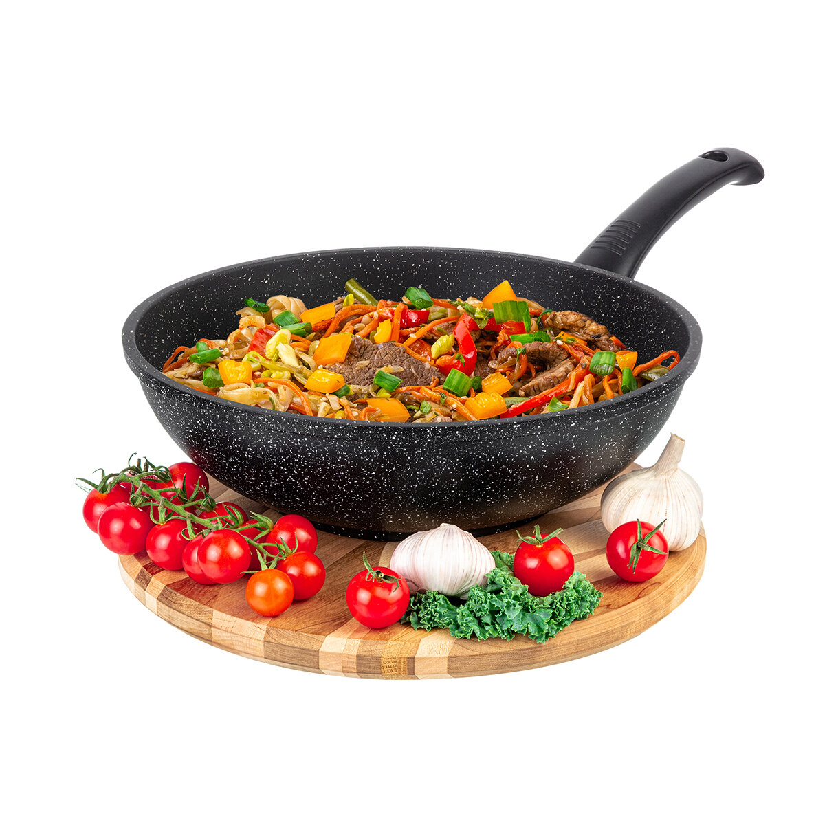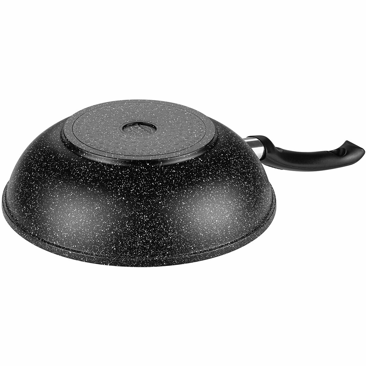 Купить Сковорода ВОК 28 см Elan Gallery гармония вкуса Черный мрамор индукция, с крышкой D28, с несъёмной ручкой