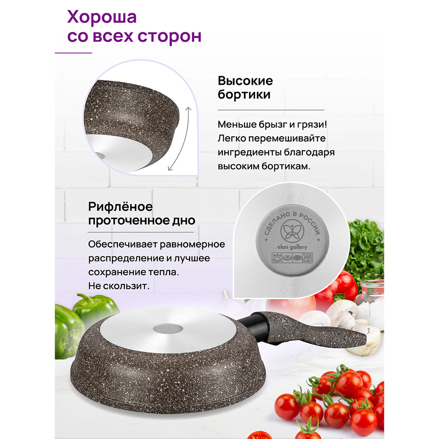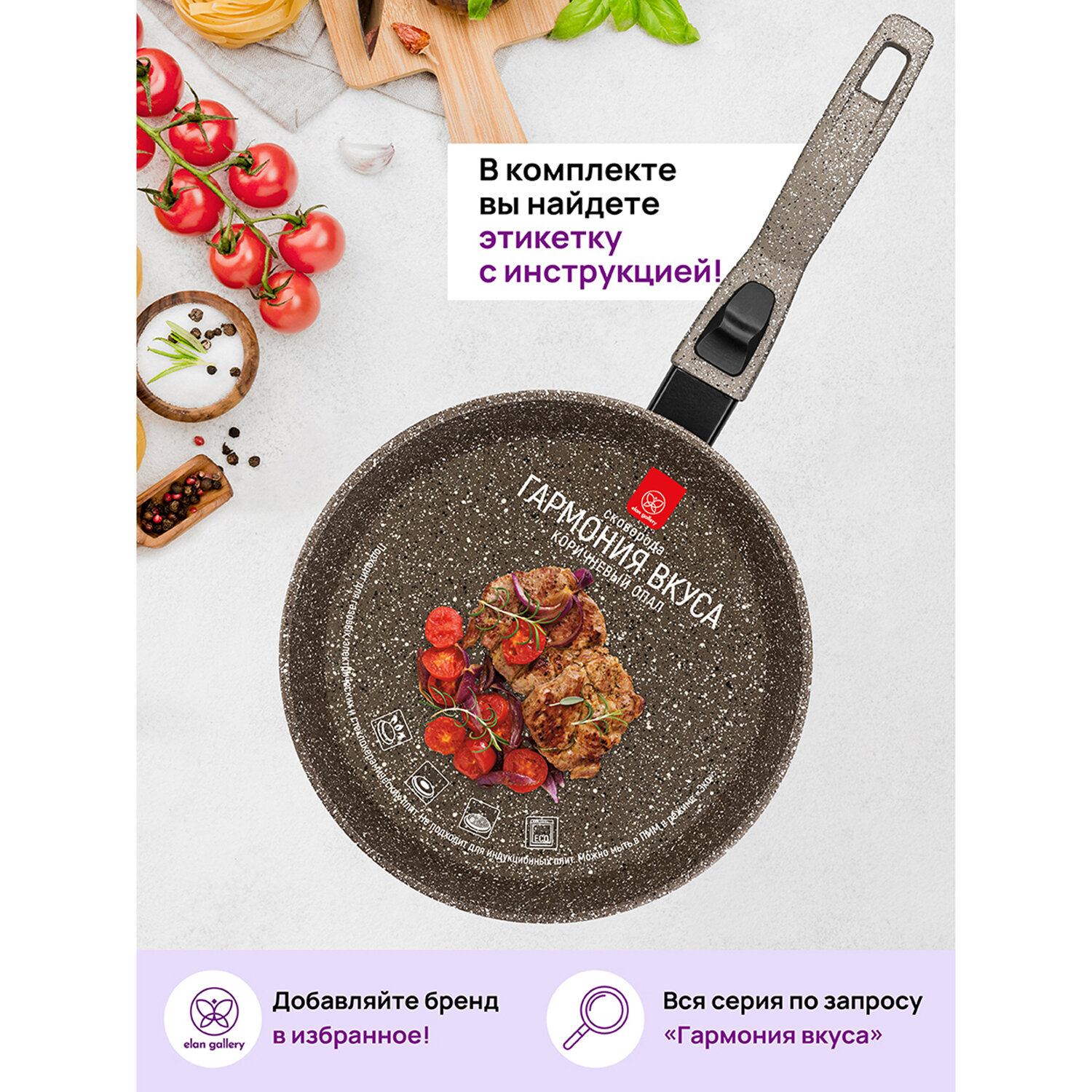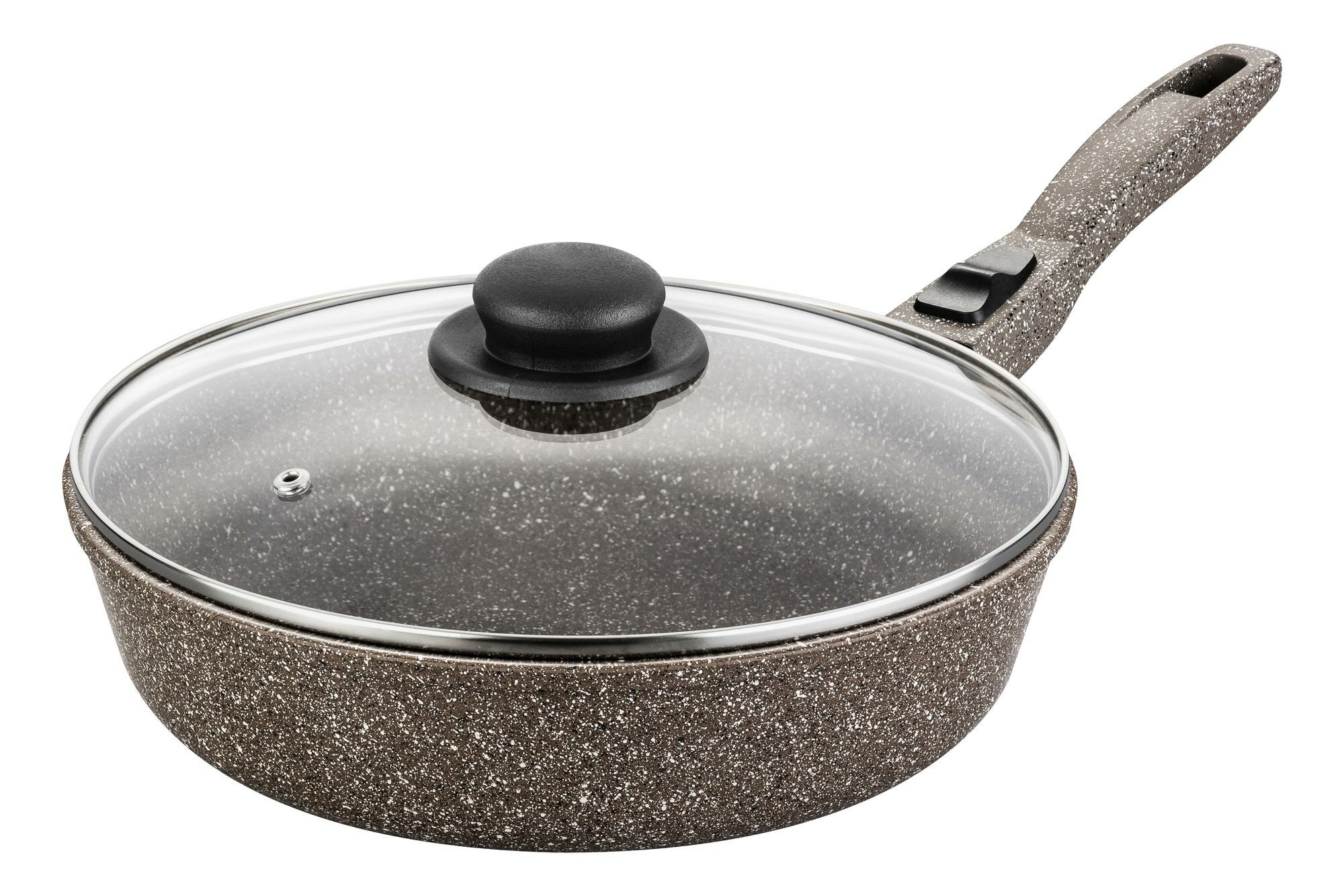Сковорода глубокая 26 см Elan Gallery гармония вкуса Коричневый опал с крышкой D26, съёмная ручка интересное: