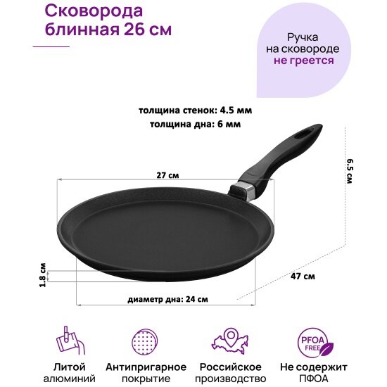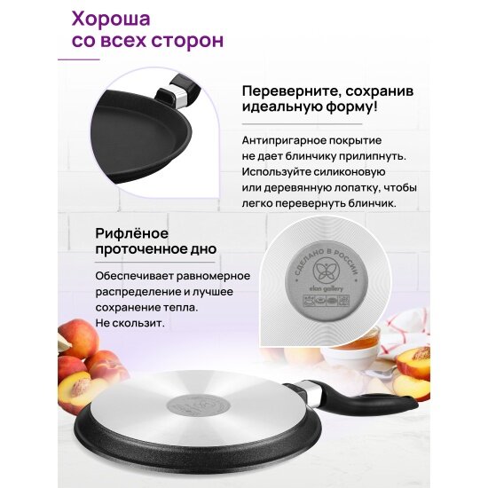 Сковорода блинная Elan Gallery гармония вкуса черный оникс, несъёмная ручка, 26 см 120401 интересное: