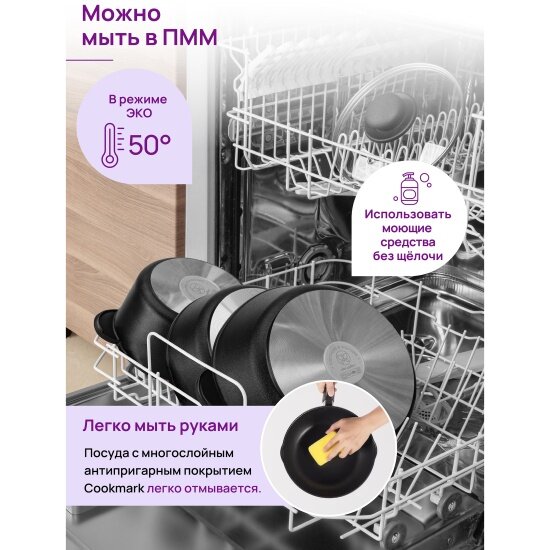 | Особенности | мытье в посудомоечной машине / ненагревающаяся ручка |