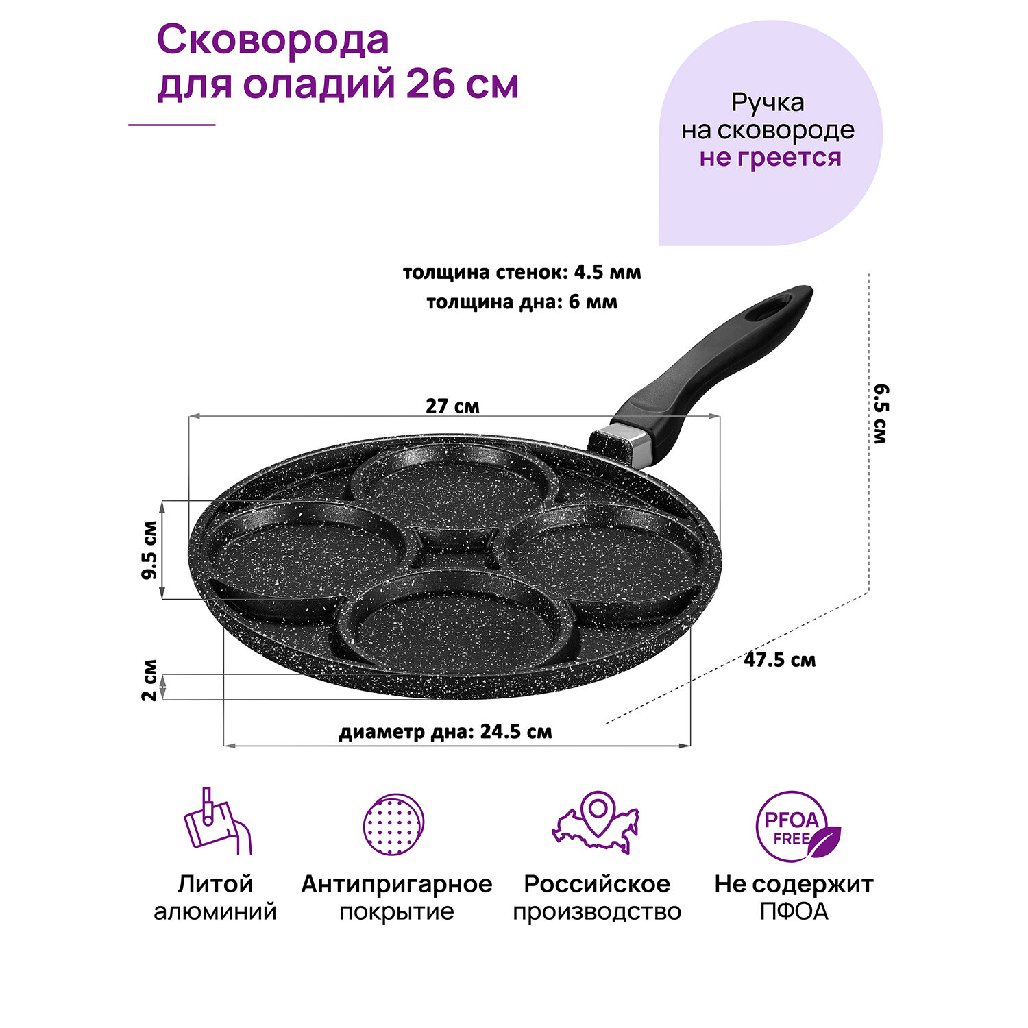 Сковорода для оладий 26 см гармония вкуса "Черный мрамор", несъёмная ручка интересное: