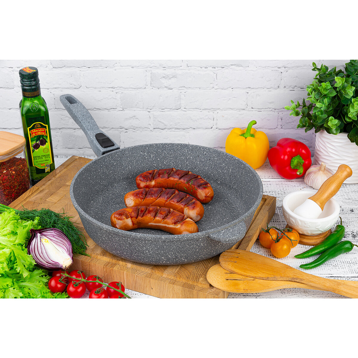 Сковорода глубокая Elan Gallery гармония вкуса Серый мрамор, съёмная ручка, 28 см