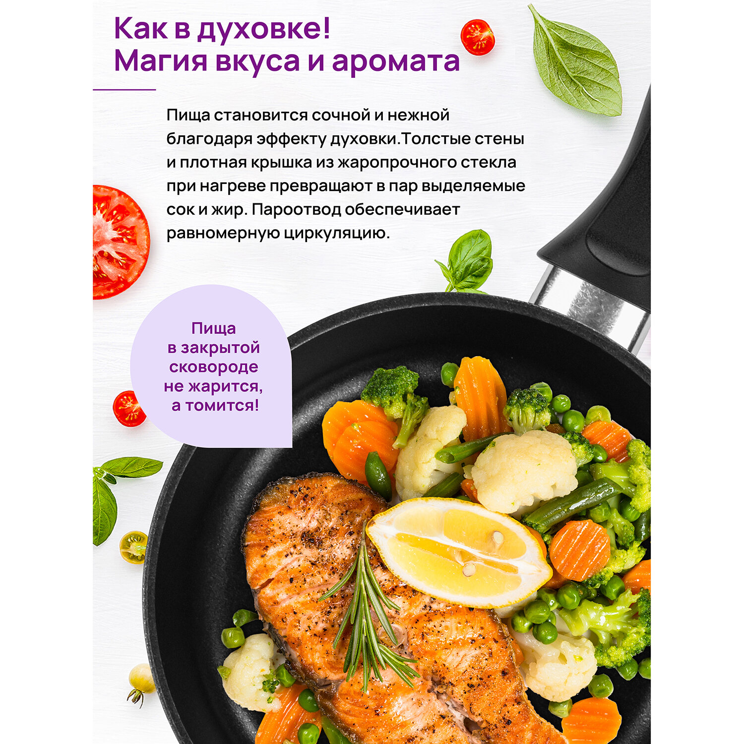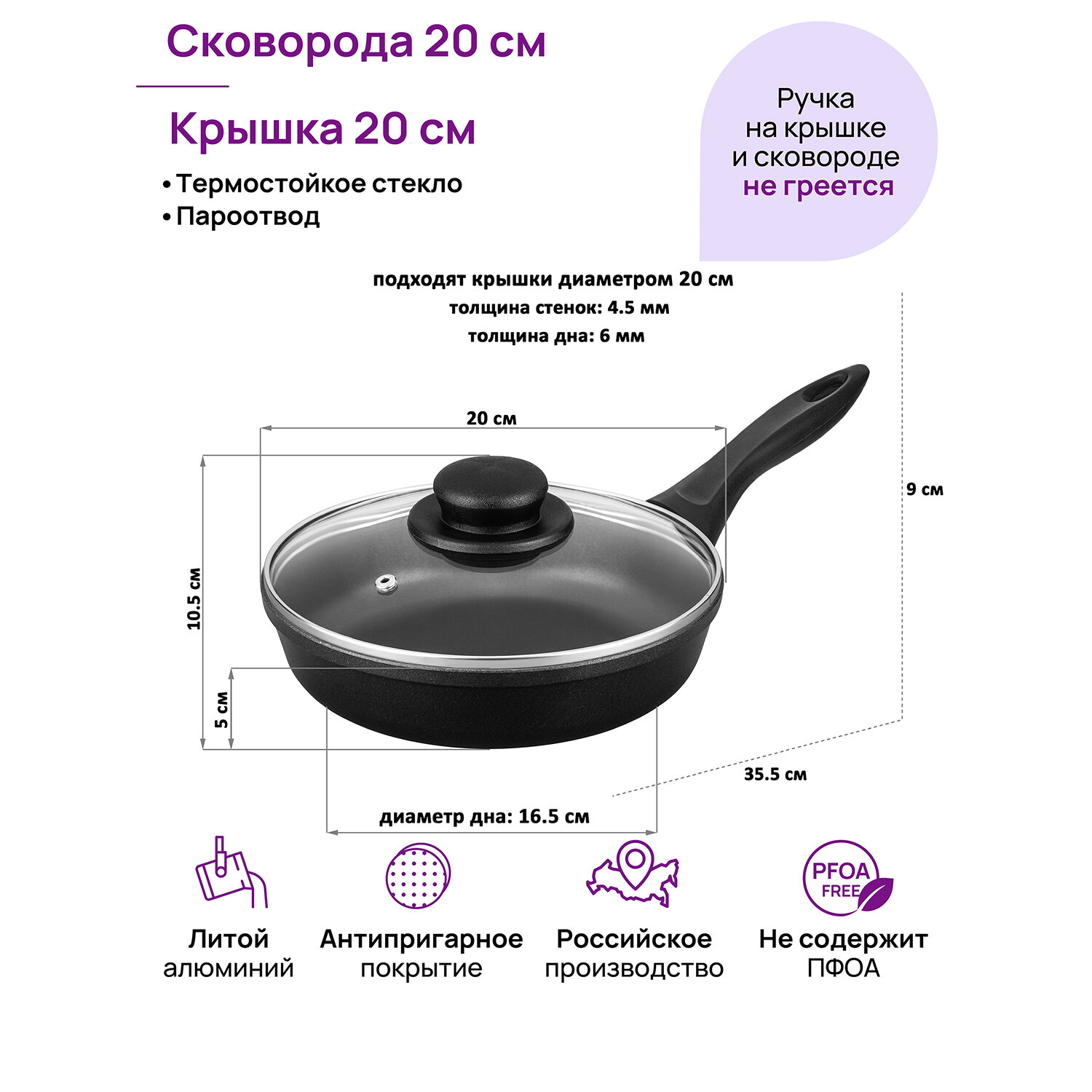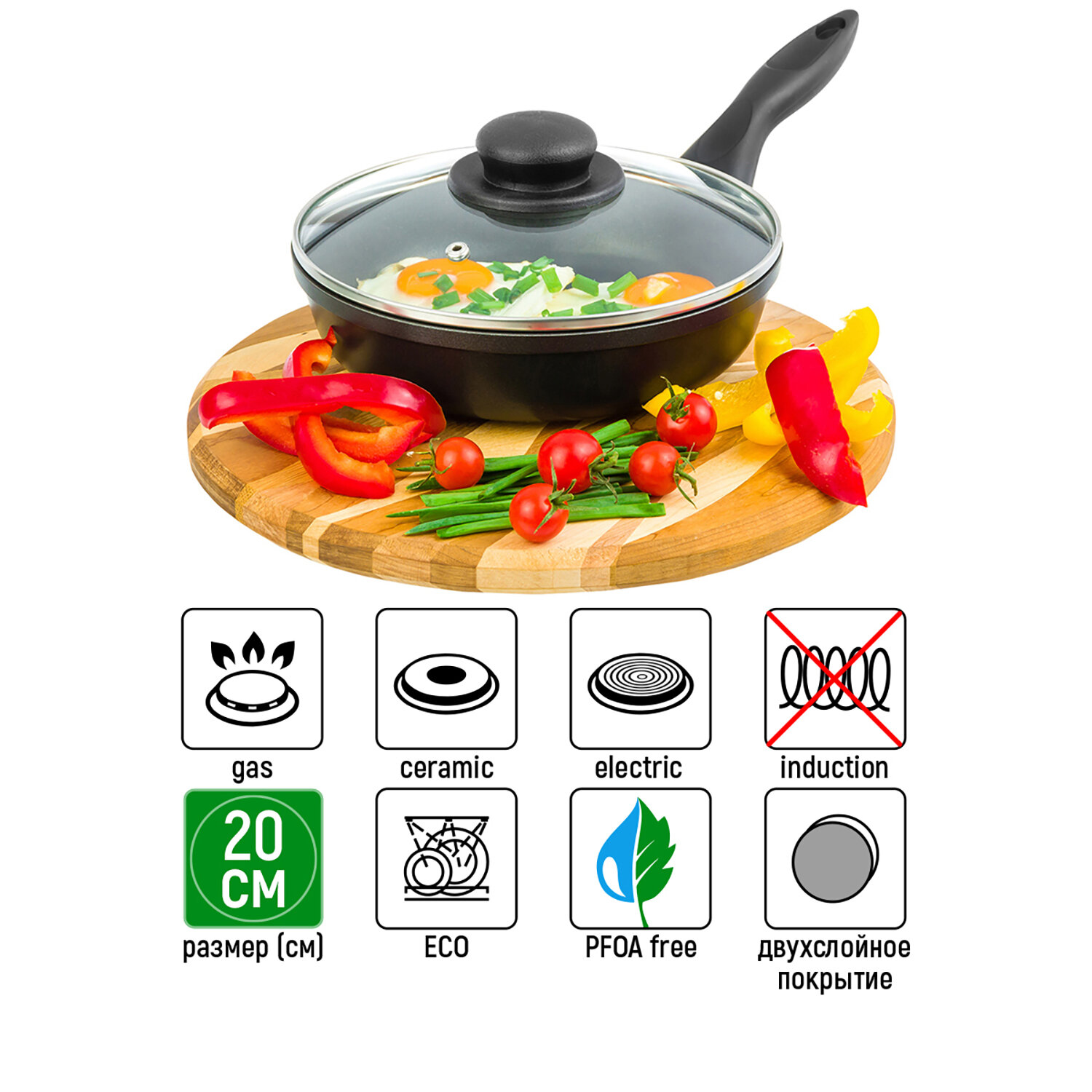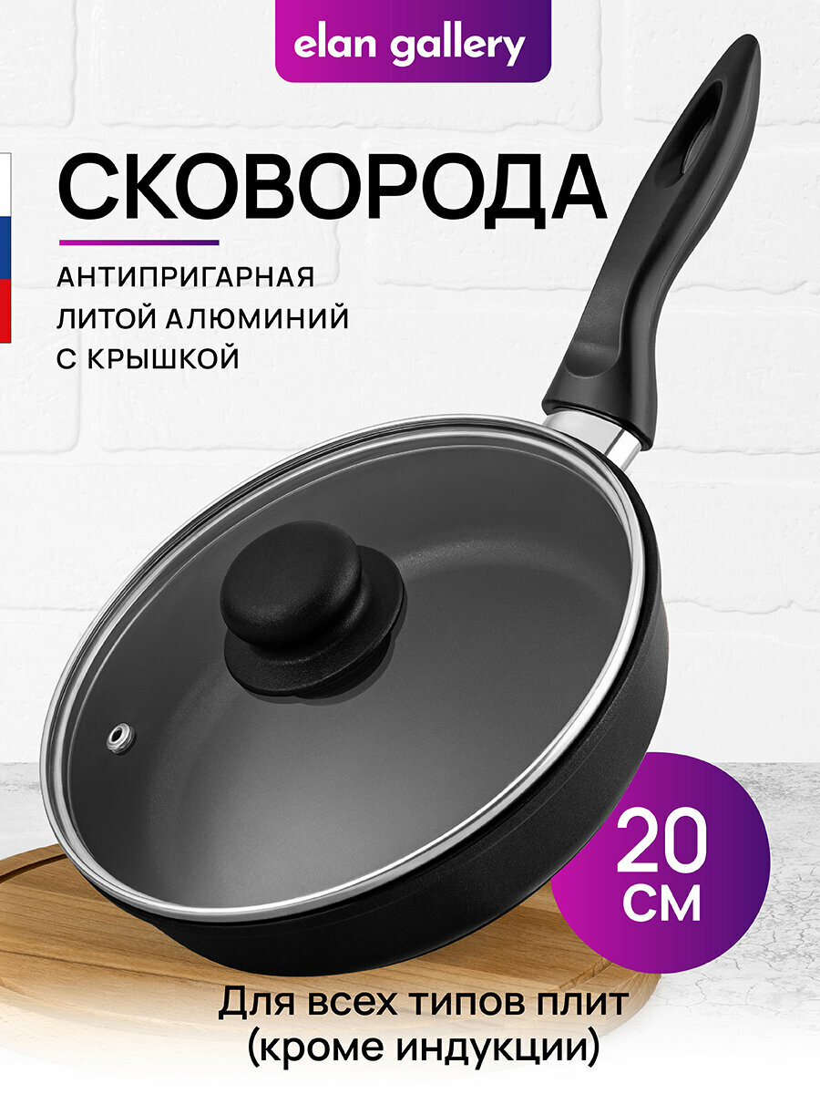 Сковорода глубокая 20 см Elan Gallery гармония вкуса Черный Оникс с крышкой D20, с несъёмной ручкой интересное: