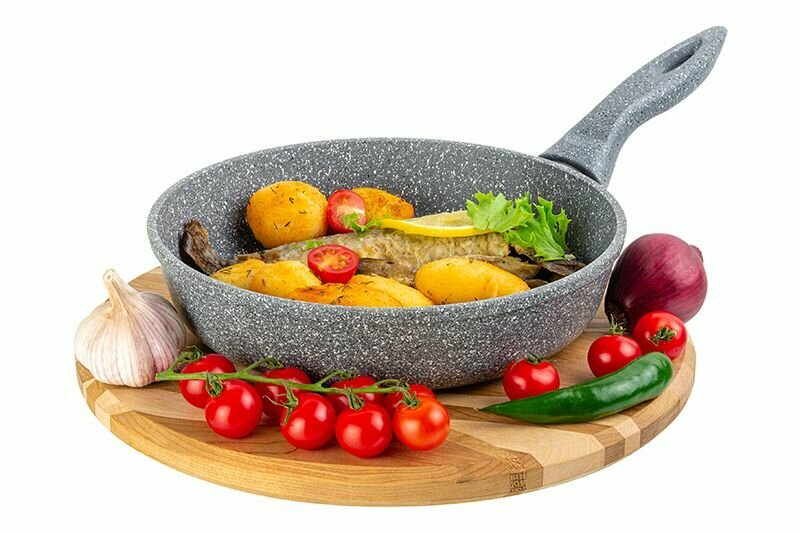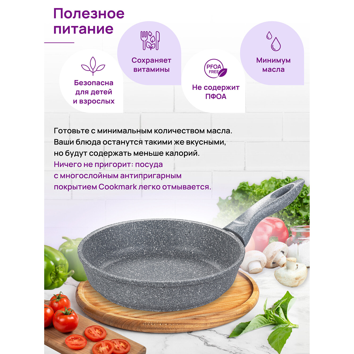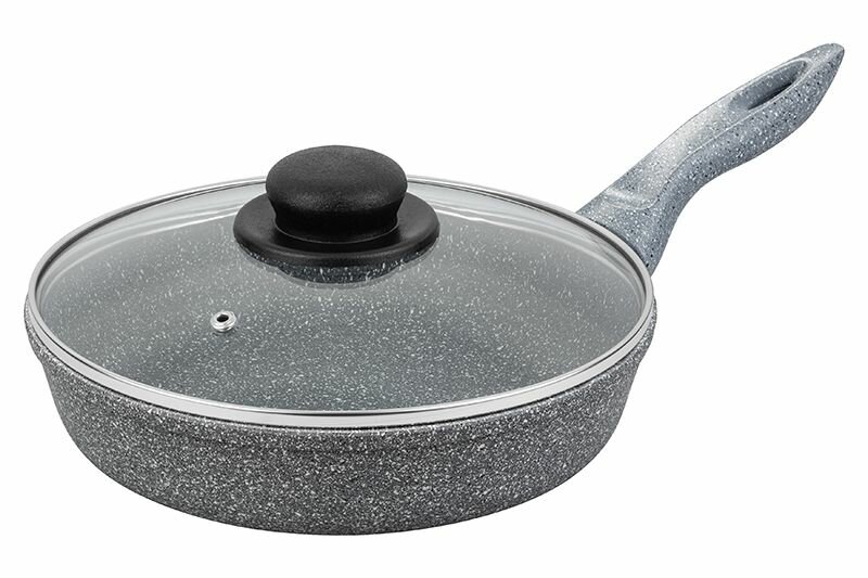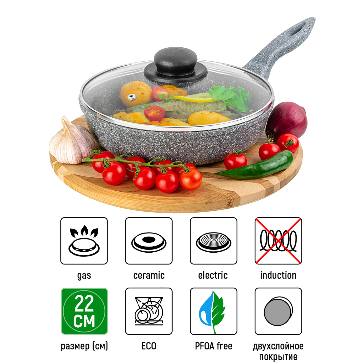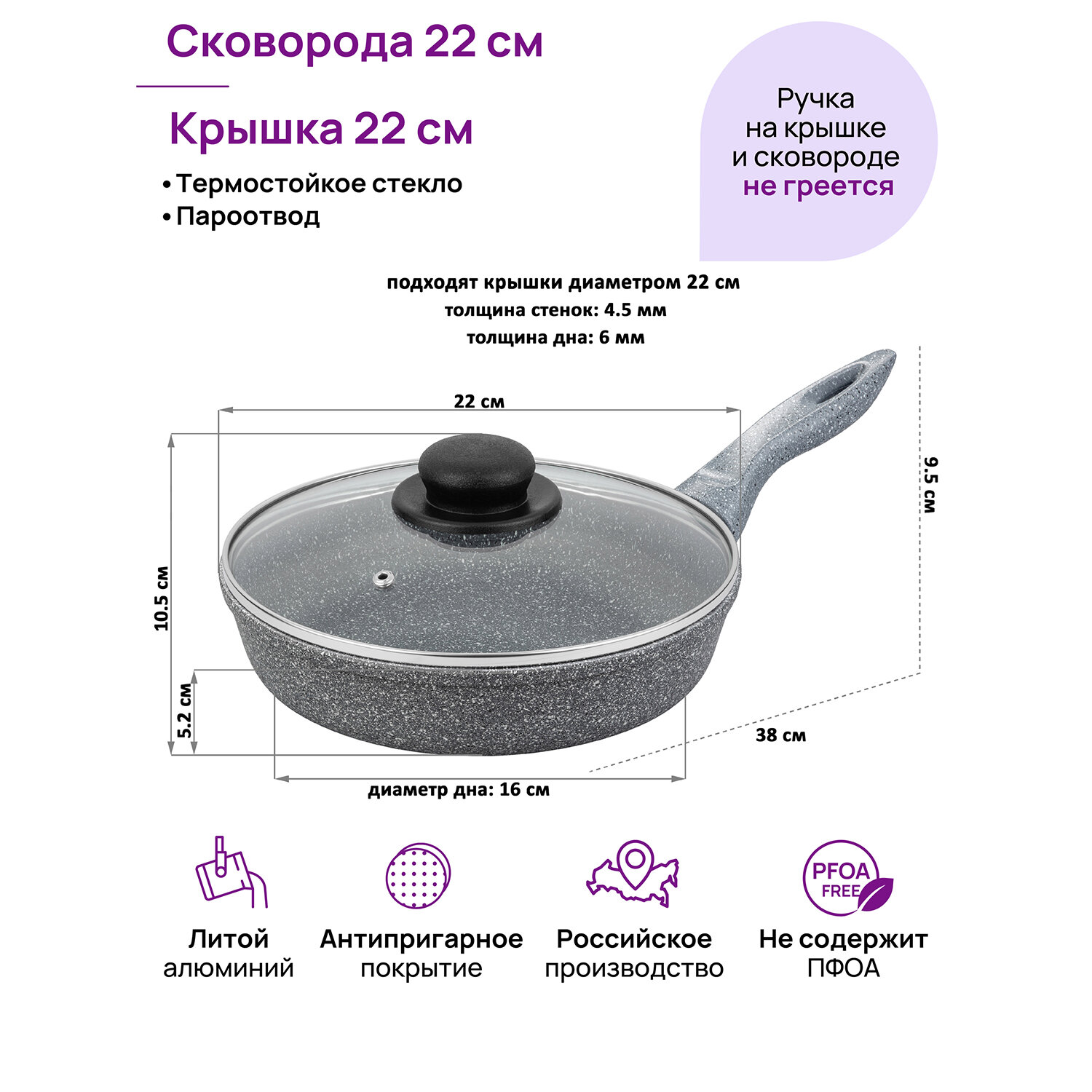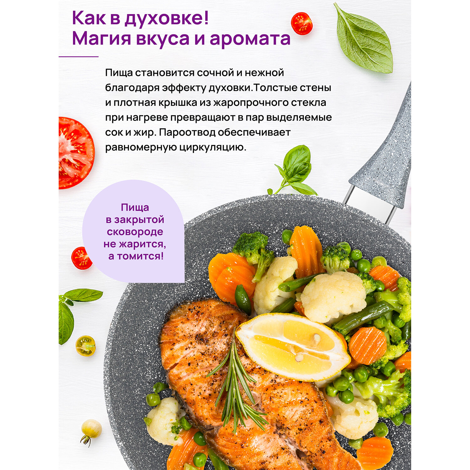 Сковорода глубокая 22 см Elan Gallery гармония вкуса Серый мрамор с крышкой D22, с несъёмной ручкой интересное: