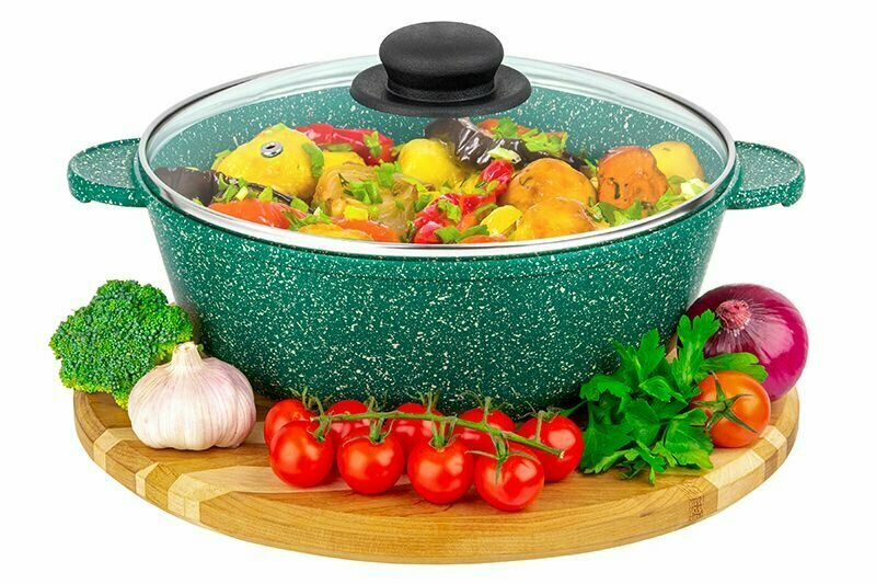 Жаровня-сотейник 3 л 24 см Elan Gallery Гармония Вкуса Изумруд с крышкой D24 .