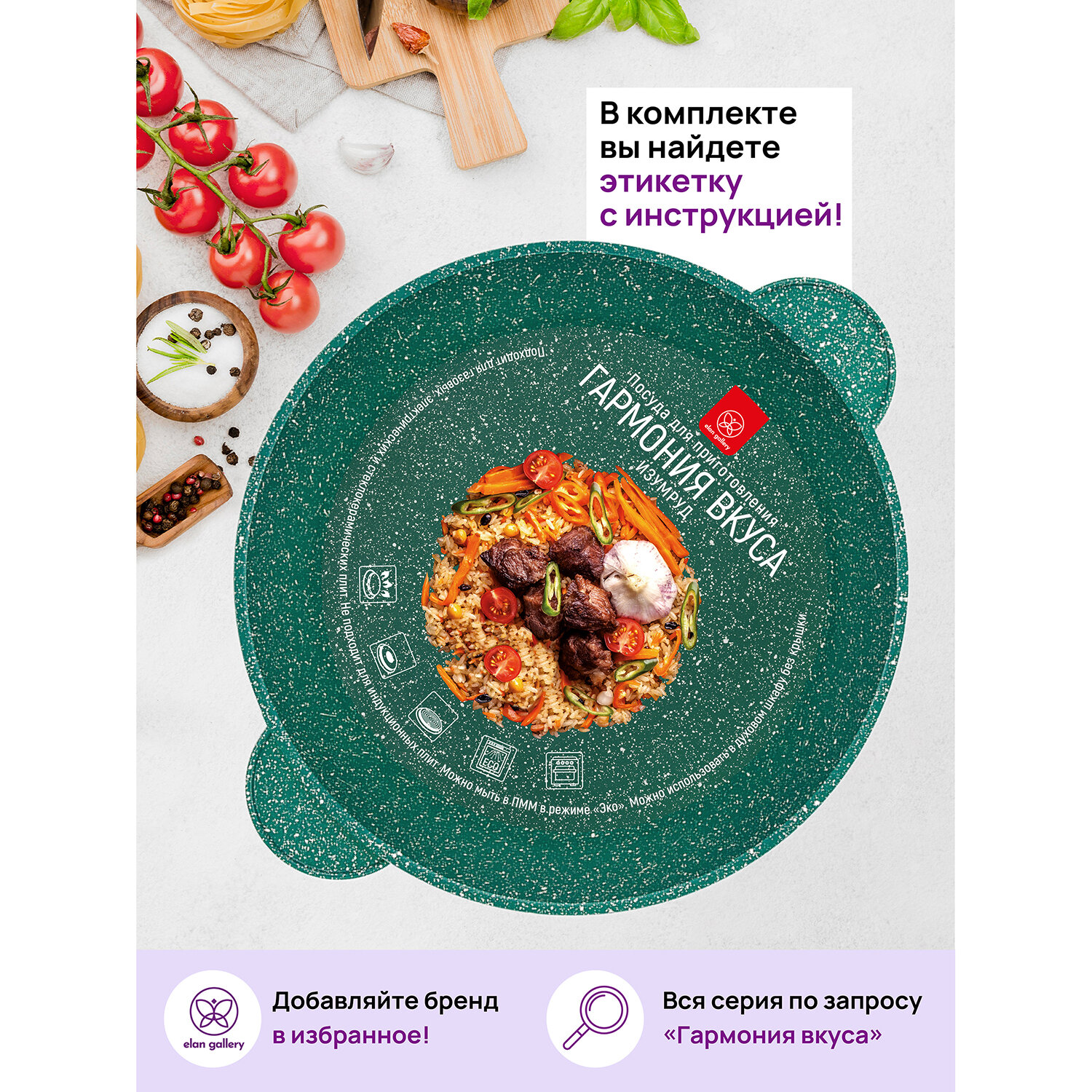 Жаровня-сотейник 3 л 24 см Elan Gallery гармония вкуса Изумруд с крышкой D24 интересное: