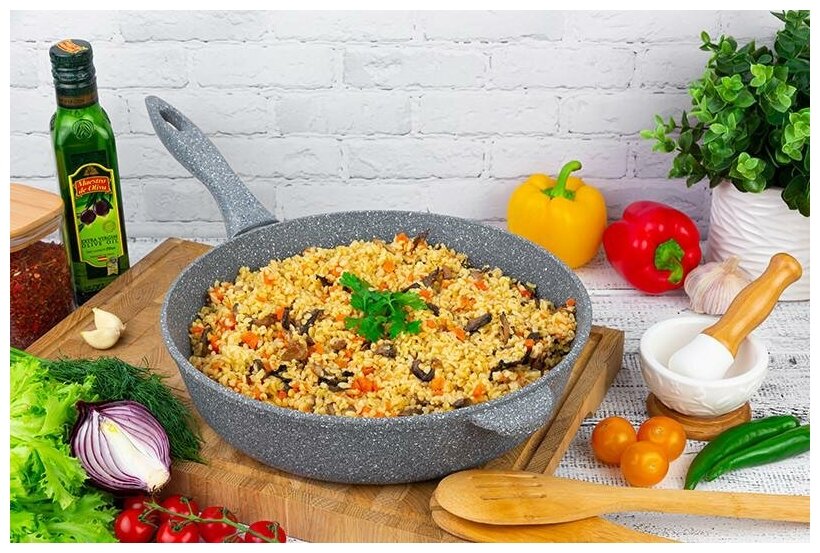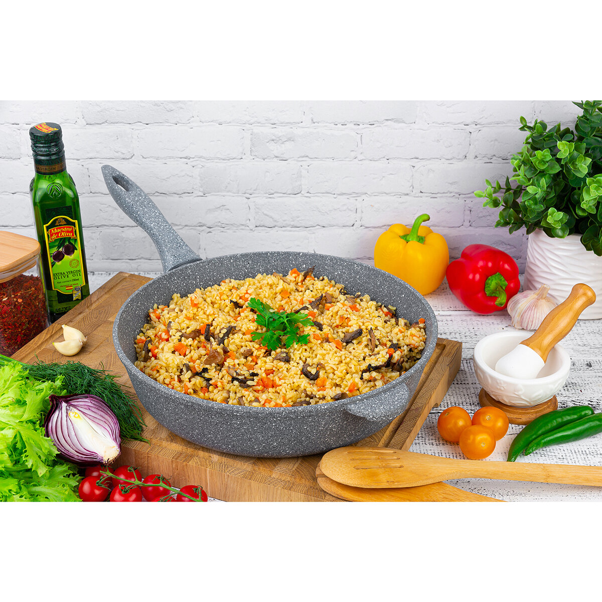 Сковорода глубокая 28 см Elan Gallery гармония вкуса Серый мрамор без крышки, несъёмная ручка интересное: