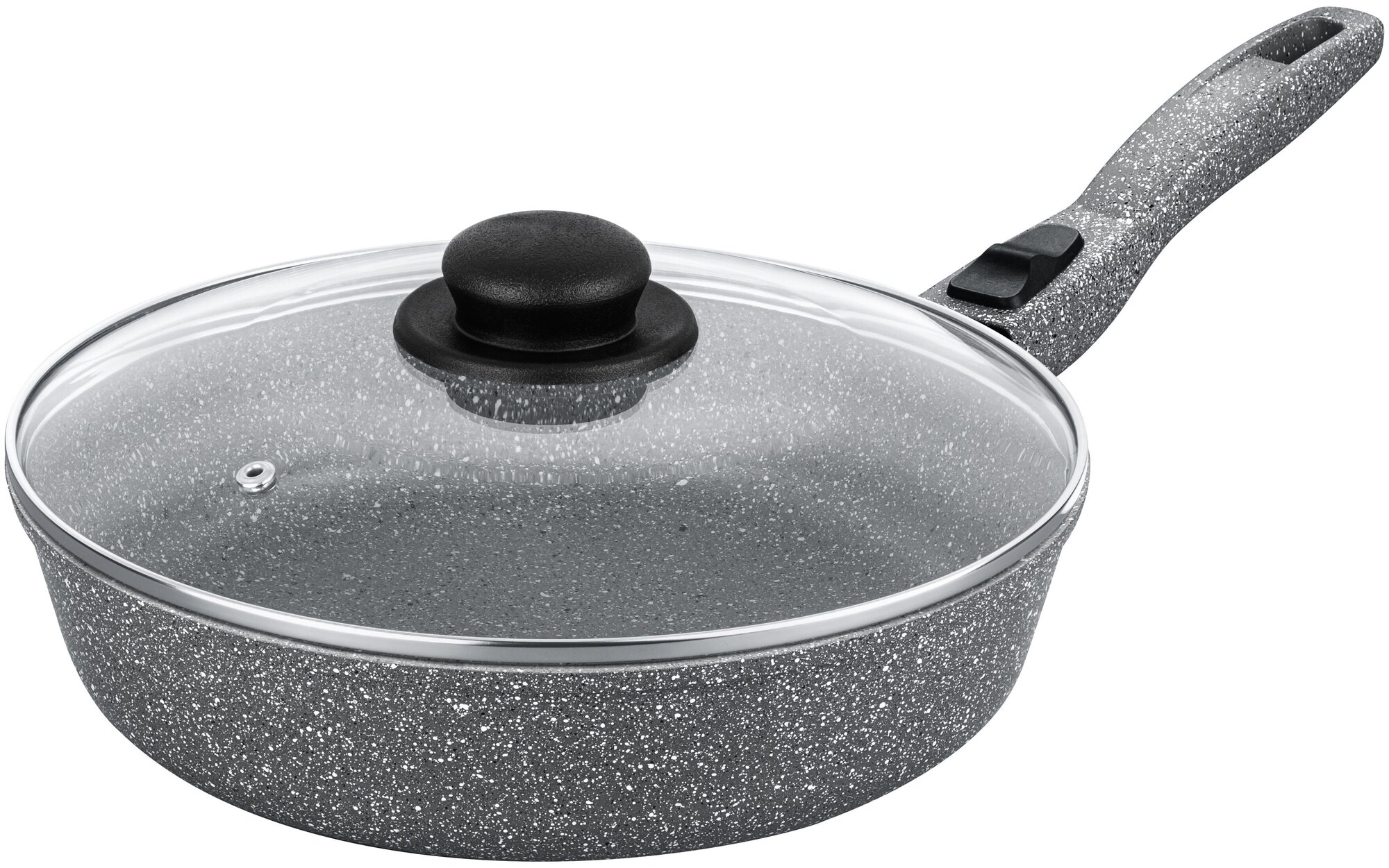 Сковорода глубокая 28 см Elan Gallery гармония вкуса Серый мрамор индукция, с крышкой D28, со съёмной ручкой