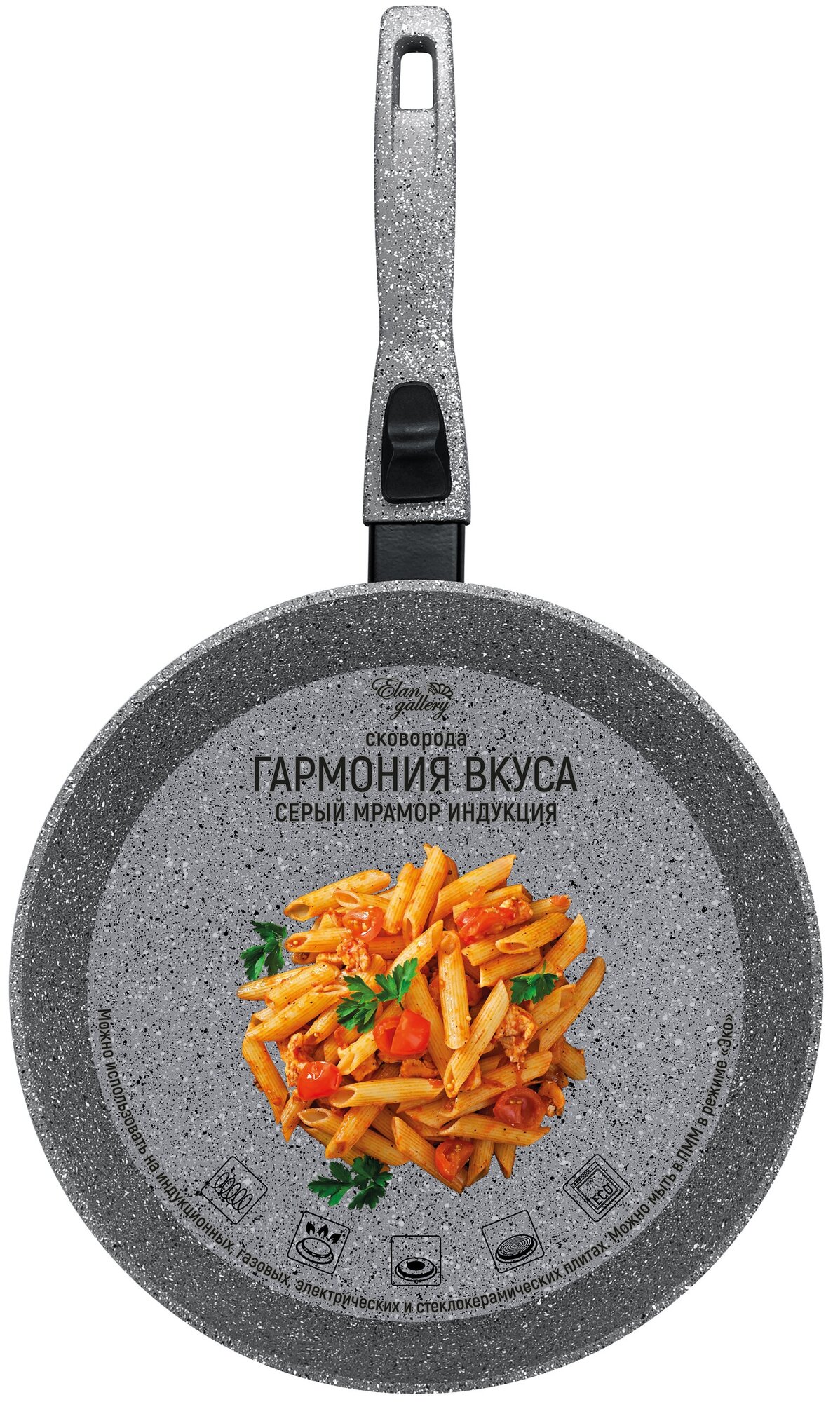 Сковорода Elan Gallery глубокая 24 см гармония вкуса "Серый мрамор" индукция, 44,5*25*12 см (121060)