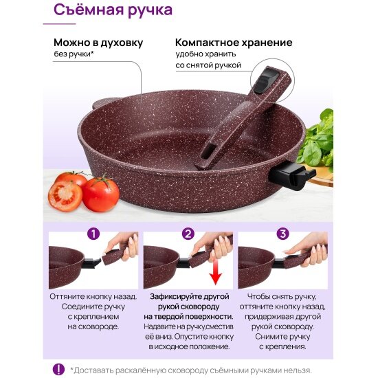 Сковорода глубокая Elan Gallery гармония вкуса Рубин, со съёмной ручкой, 28 см интересное: