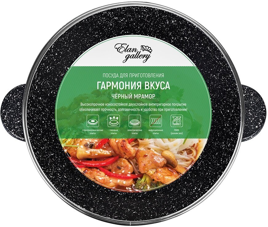 Жаровня-сотейник 5,5 л 32 см Elan Gallery гармония вкуса Черный мрамор с крышкой