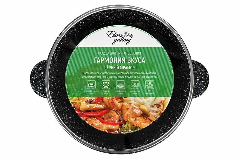 Жаровня-сотейник 4,5 л 28см Elan Gallery гармония вкуса Черный мрамор с крышкой толстостенная из литого алюминия с двухслойным антипригарным покрытием