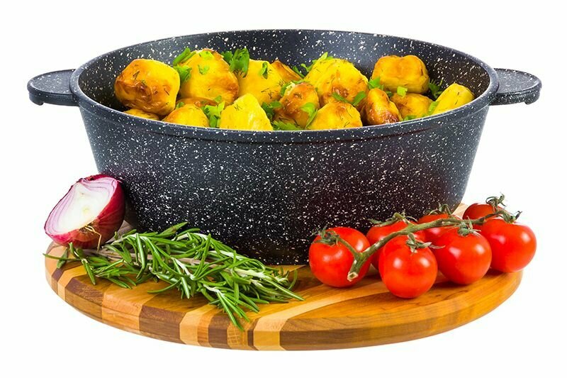 Жаровня-сотейник 4,5 л 28 см Elan Gallery гармония вкуса Серый агат с крышкой толстостенная из литого алюминия с двухслойным антипригарным покрытием Идеальный подарок на Новый год, Рождество, День Рождения и 8 марта