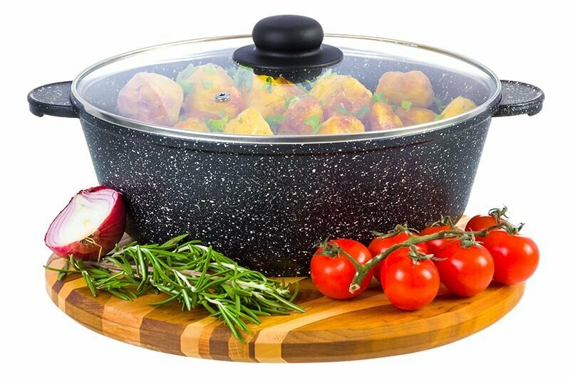 Жаровня (сотейник) 26 см 3,7 л Гармония Вкуса Elan Gallery "Черный мрамор" С Крышкой ф26, 32,5х27х14 .