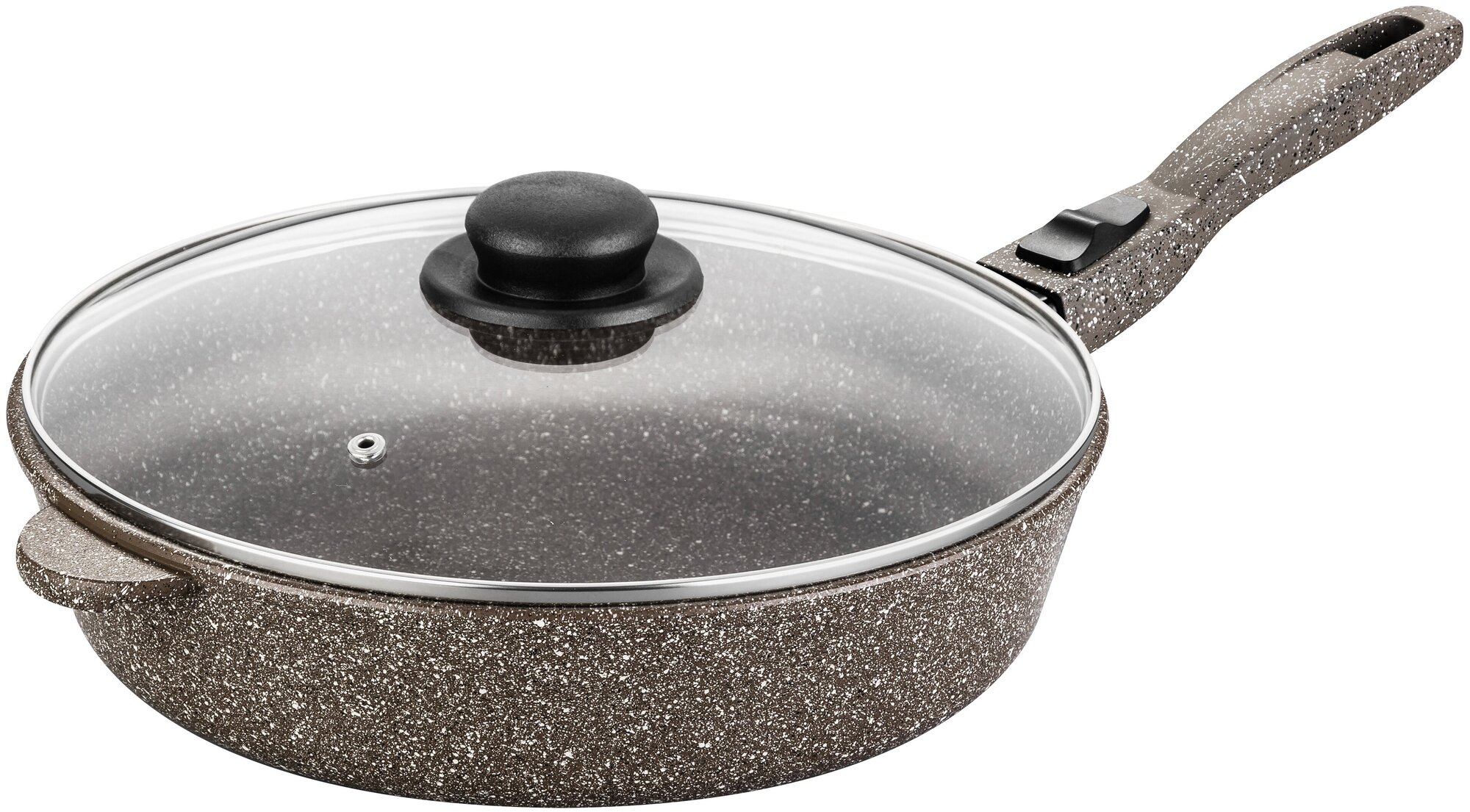 Сковорода глубокая 28 см Elan Gallery гармония вкуса Черный мрамор с крышкой D28, съёмная ручка