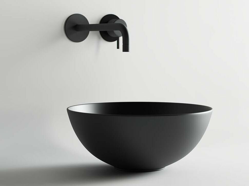 CN6004 Умывальник чаша накладная круглая (цвет Чёрный Матовый) Element 358*358*155мм