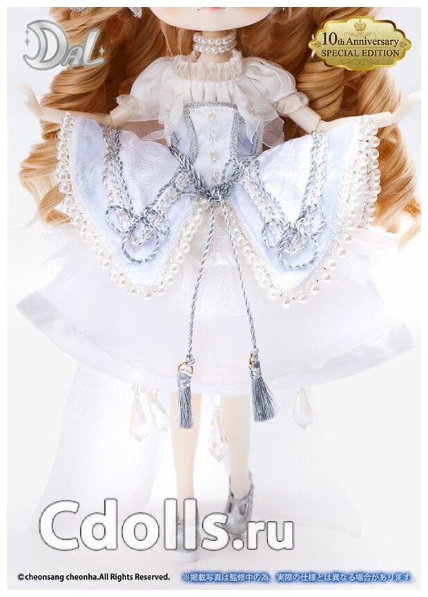 | Комплектация | кукла Дал 10-ый юбилей Дал Денеб в одежде (ободок, маска, бусы, корсет, юбка, подъюбник, блузка, штанишки, носки, туфли), подставка, упаковка |