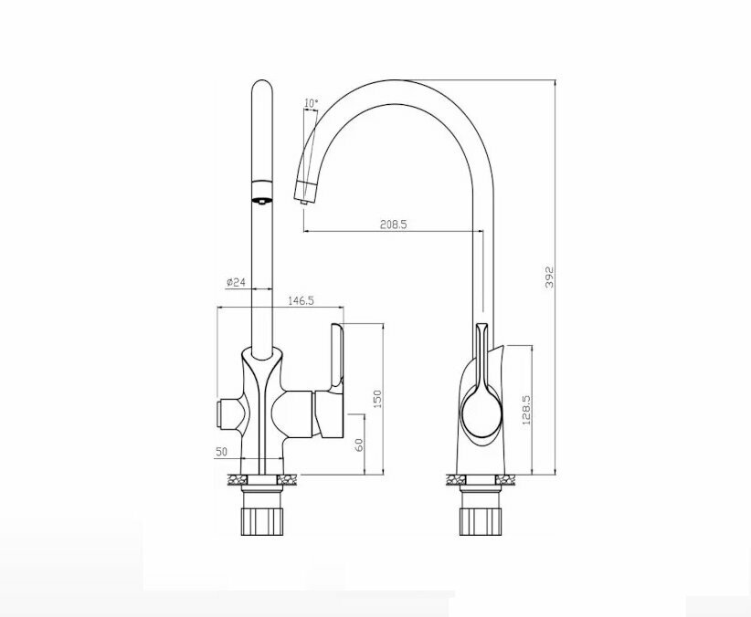 | Комплектация | Гибкая подводка 50 см, гибкая подводка под питьевую воду 50 см, переходник под трубку фильтра 6 мм |