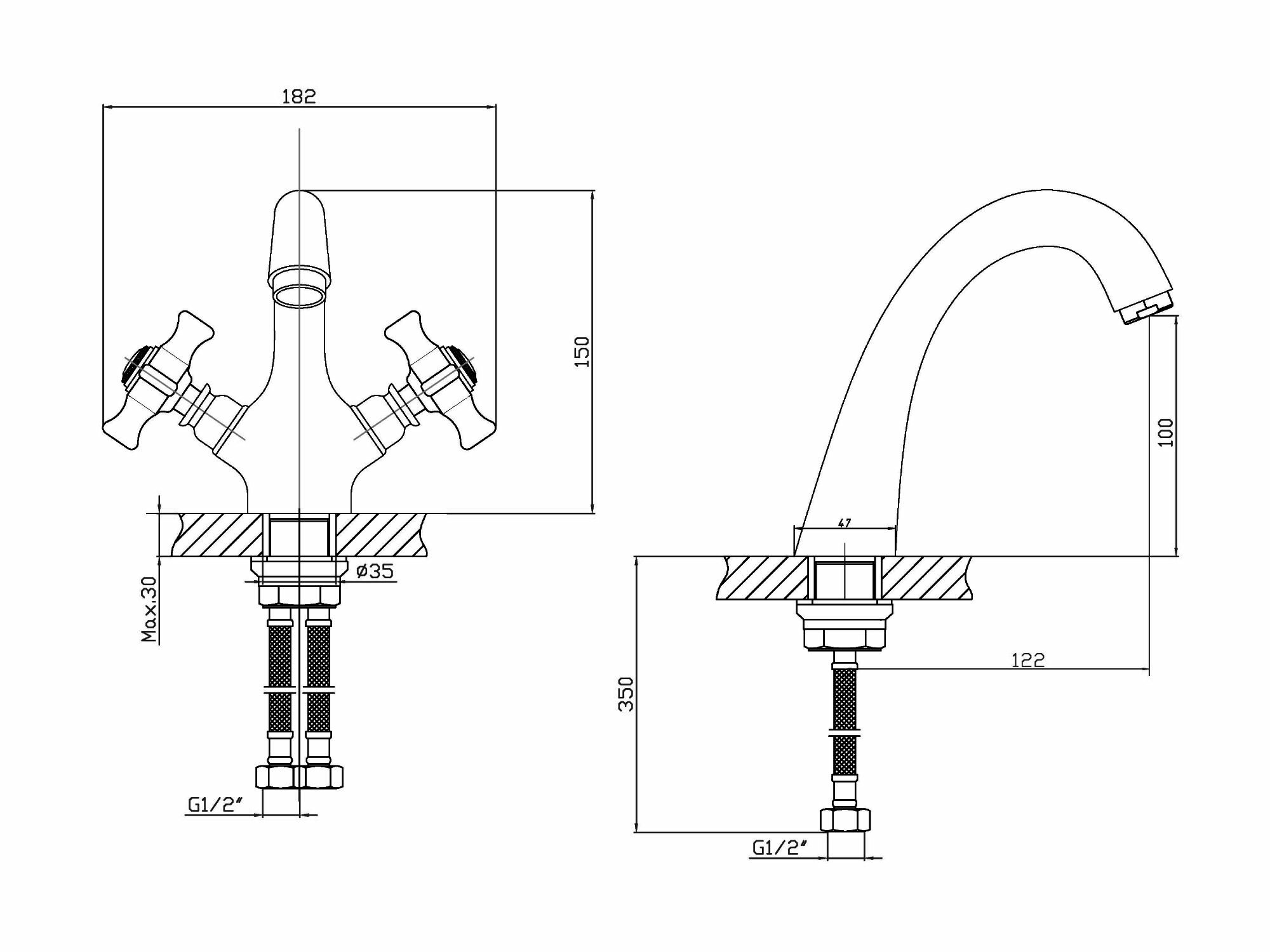 Смеситель для раковины Agger Retro-X A1702100 двухзахватный 324