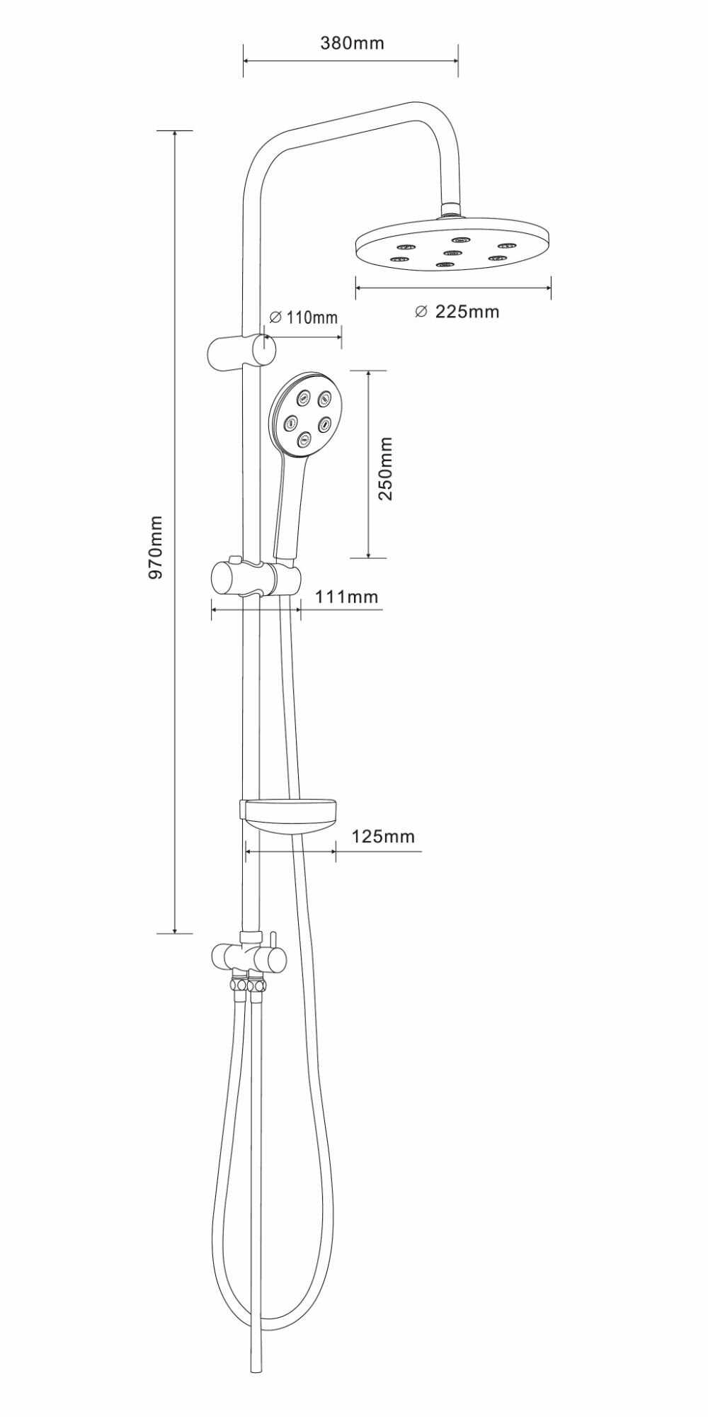 | Комплектация | верхний душ / держатели штанги / держатель лейки / шланг для душа / душевая лейка / душевая штанга / мыльница / переключатель потоков / к-т креплений / инструкция |