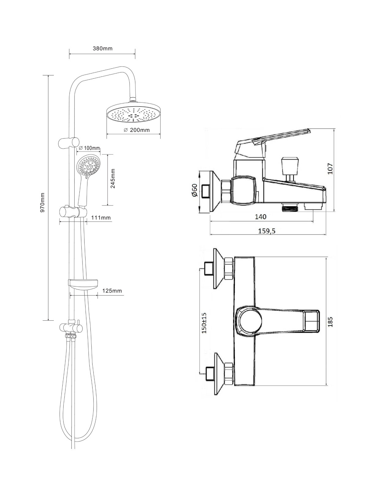 | Комплектация | верхний душ,шланг для душа,смеситель с изливом,душевая лейка,душевая штанга,держатель лейки,держатель штанги,эксцентрики,инструкция |