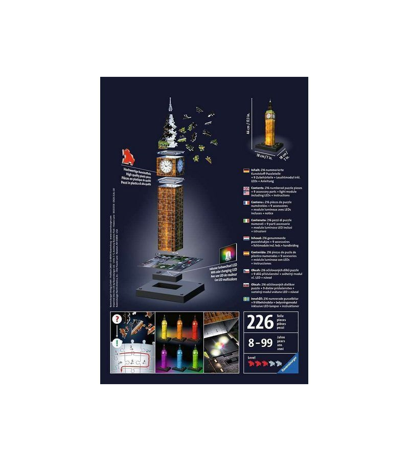 Ravensburger. Пазл карт. 3D 216 "Ночной Биг-Бен"