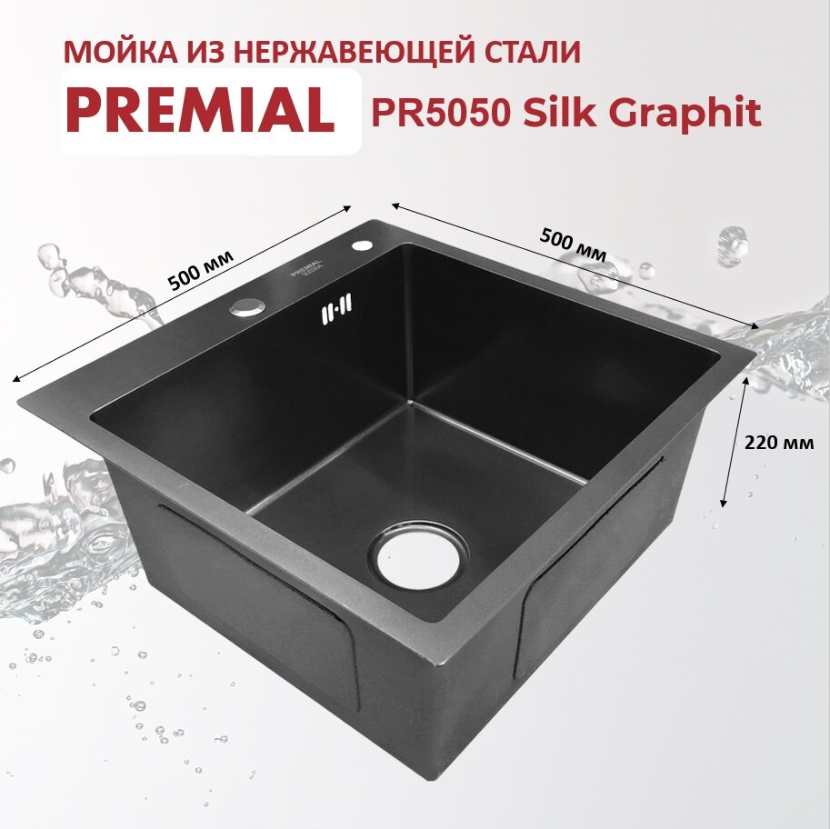 Мойка кухонная врезная Premial PR5050, цвет графит, нержавеющая сталь (3,0) мм, 500х500х220 мм / раковина для кухни интересное: