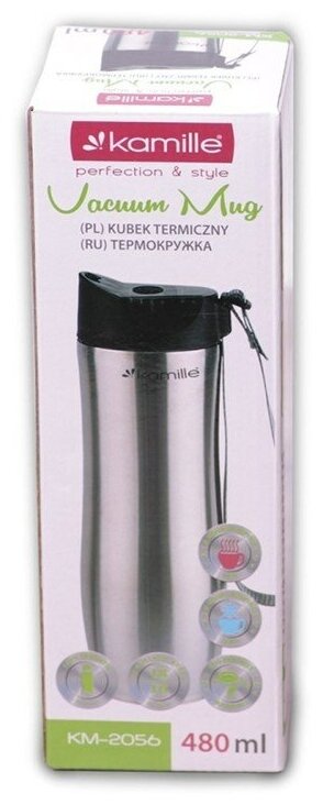 KAMILLE KM-2056 Термокружка 480м непроивайка стаьная KAMILLE