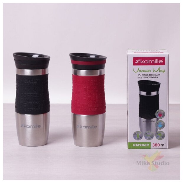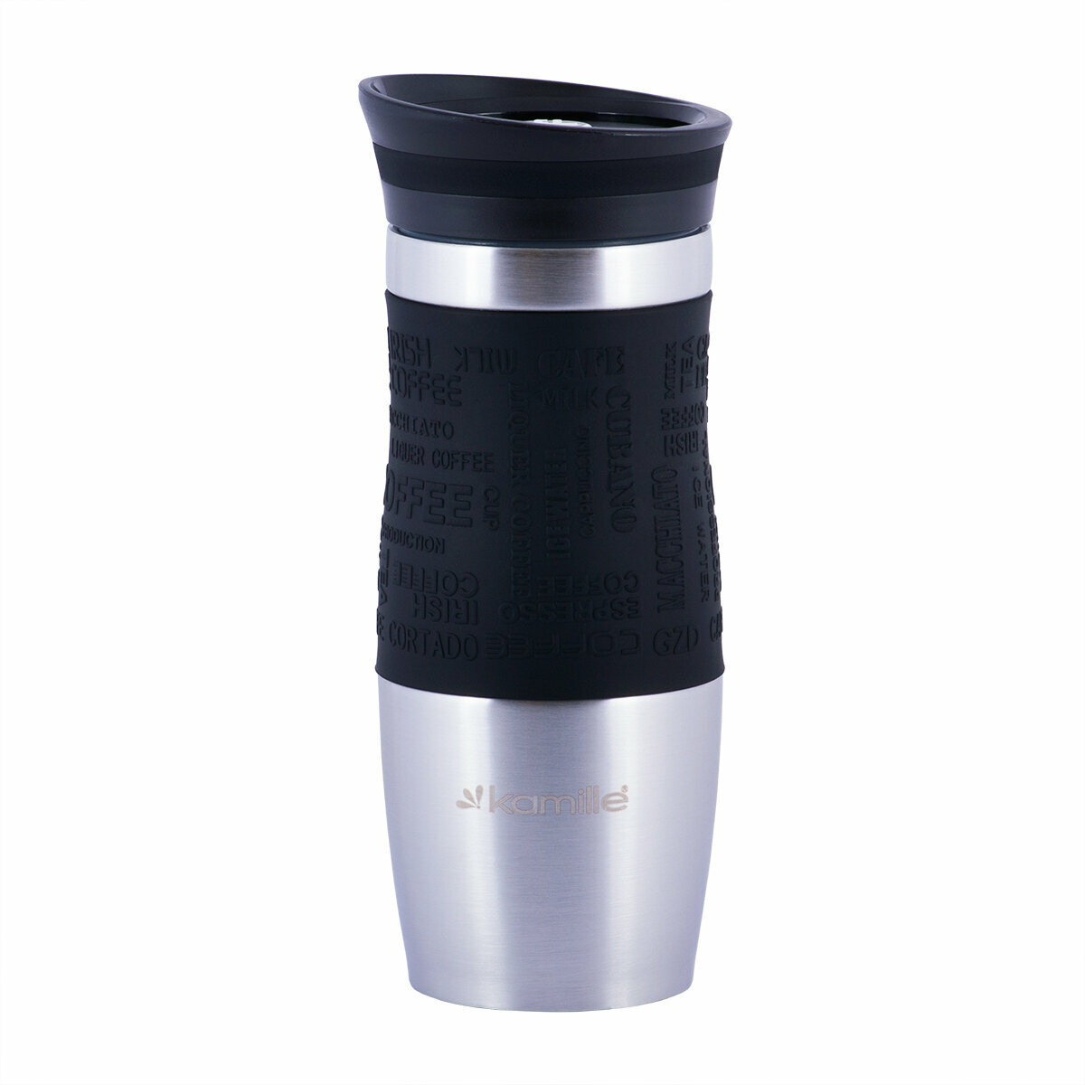 Термокружка 380 мл. из нержавеющей стали Kamille KM-2069 с TPR-вставкой (2069 / черный)