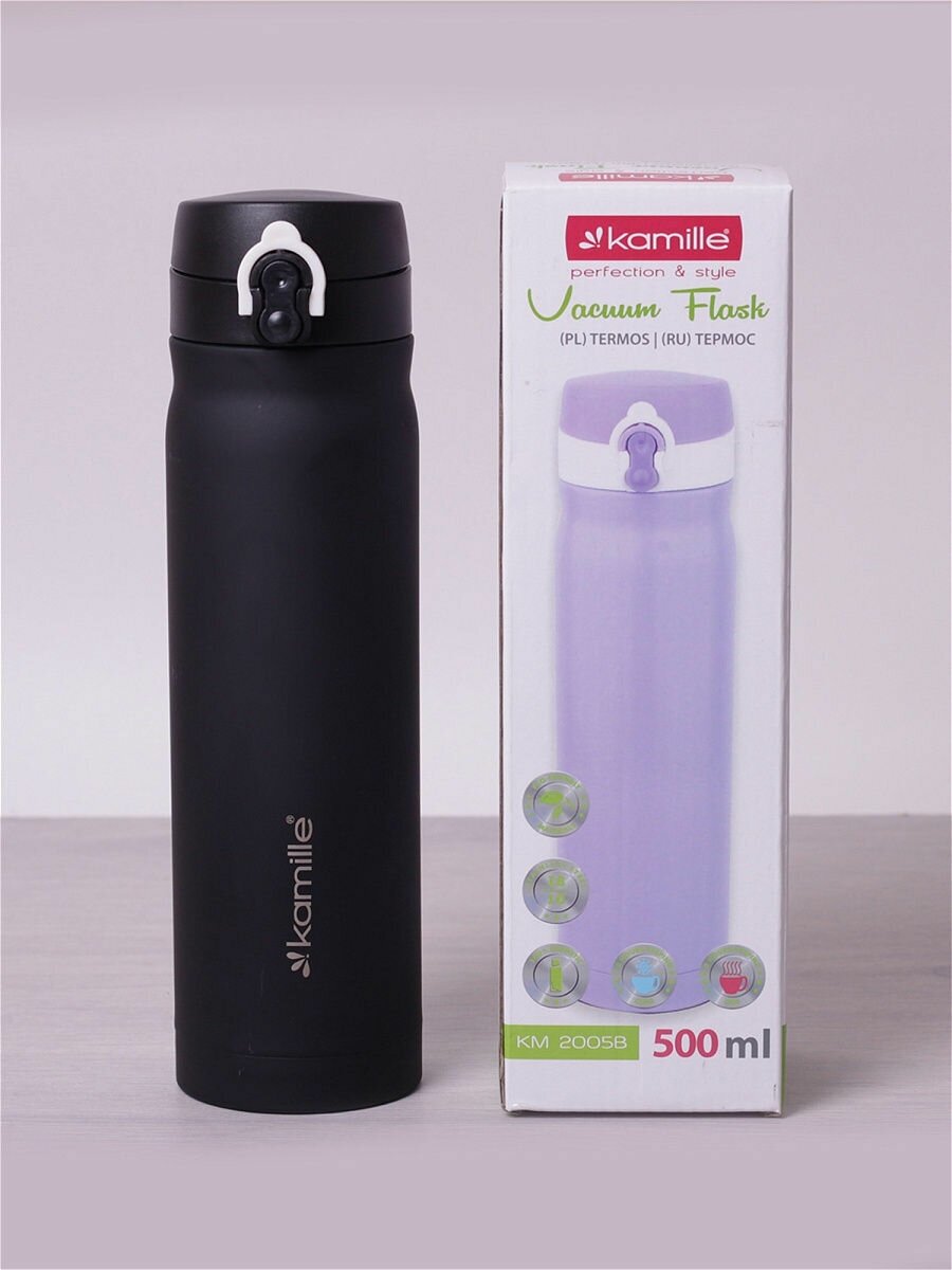 Термос-бутылка Kamille 500мл (черный) интересное: