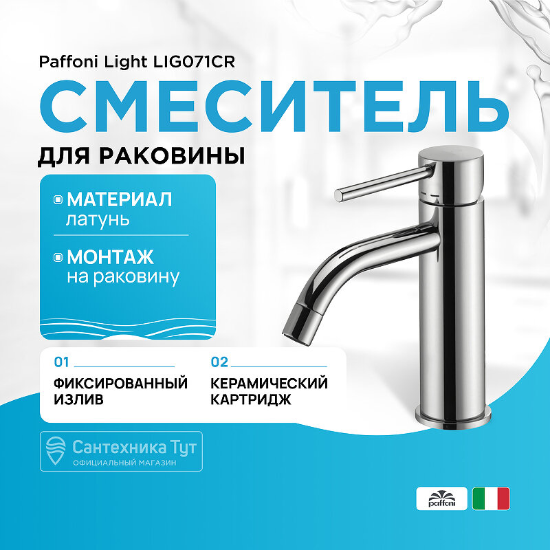 Смеситель Paffoni, серии LIGHT, для раковины без д/к, хром LIG071CR