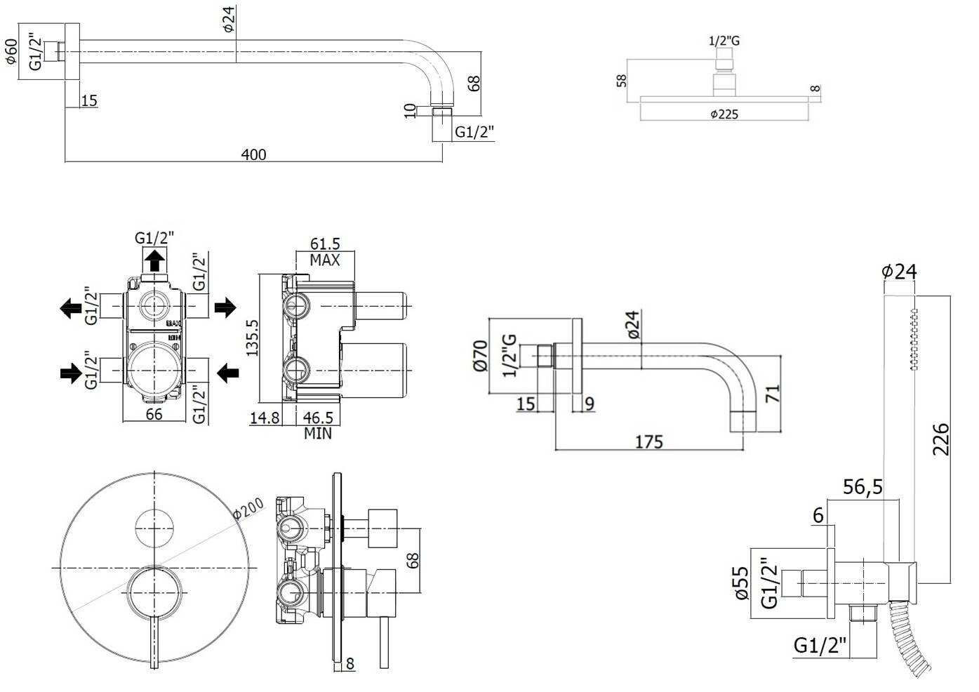 Комплект KITLIG019CR139 для ванны с изливом 175мм, смеситель LIG019CR на 3 выхода, душ 225мм, LIGHT, хром Paffoni интересное: