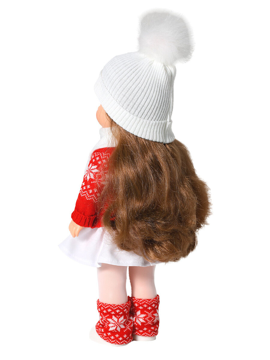 | Комплектация | кукла, трикотажная майка с воротником-стойкой и застёжкой, юбка в складку, свитер с длинными рукавами с манжетами, шарф, гетры, шапка, колготки из сетки-стрейч и кроссовки, батарейки |