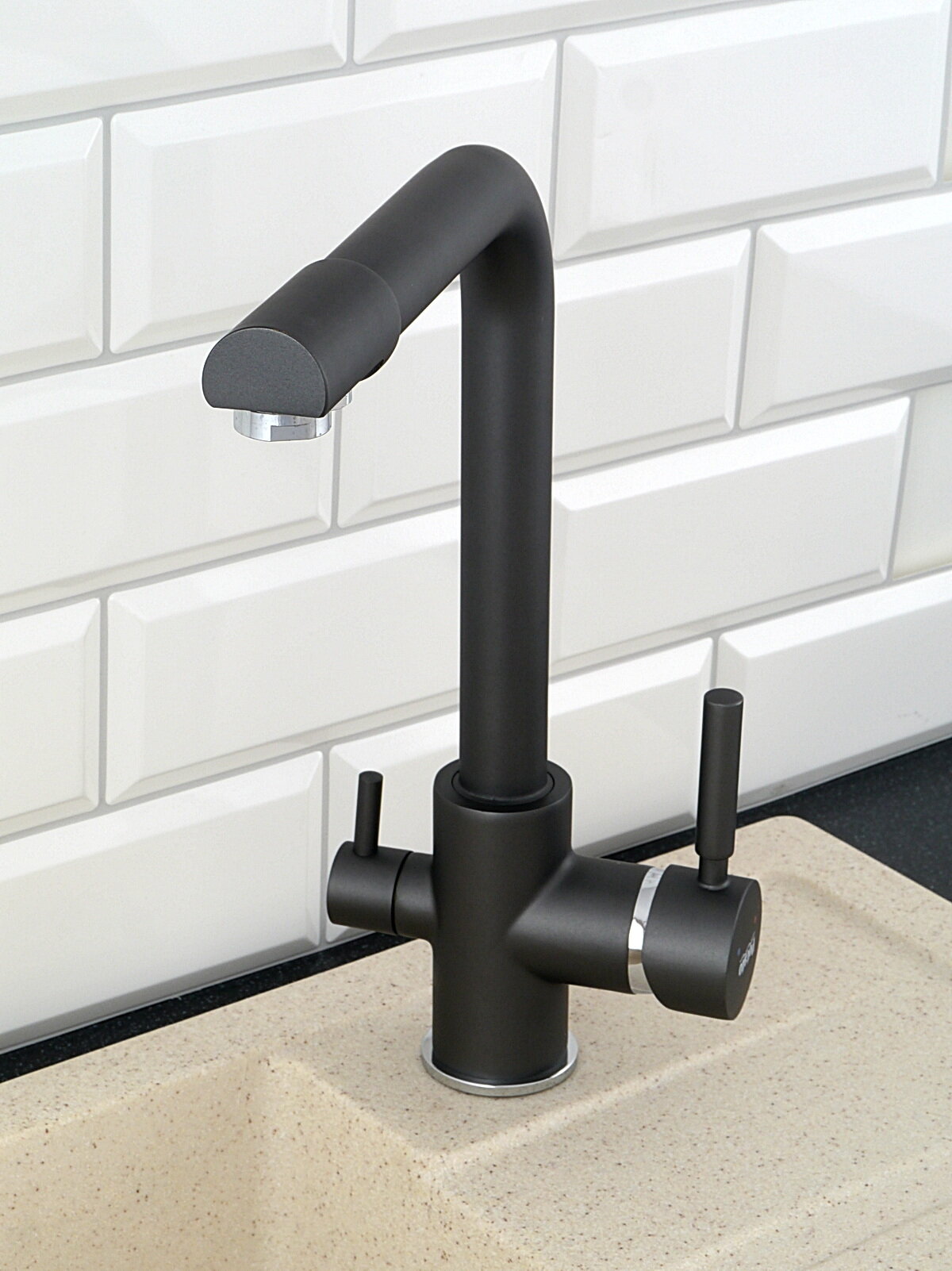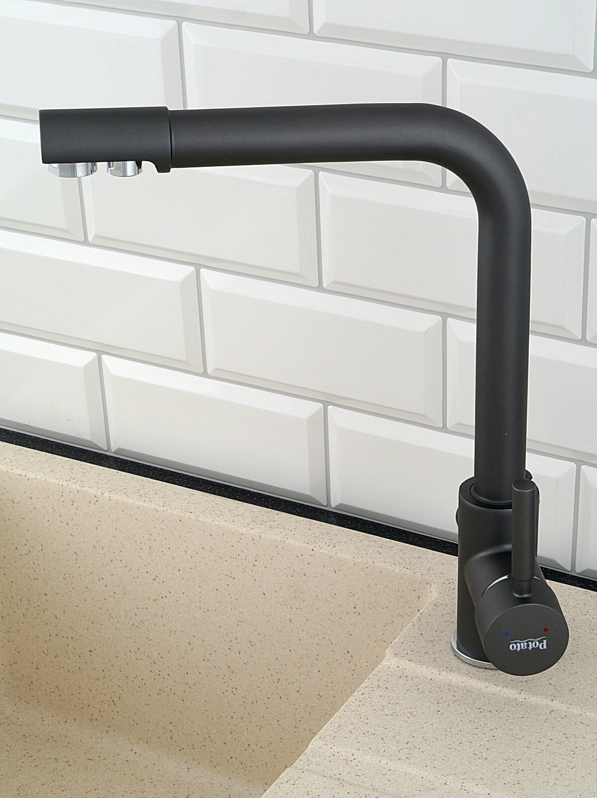 Смеситель на кухню Potato P4498-6 с краном для фильтрованной воды, картридж 35 мм, чёрный, крепление гайка