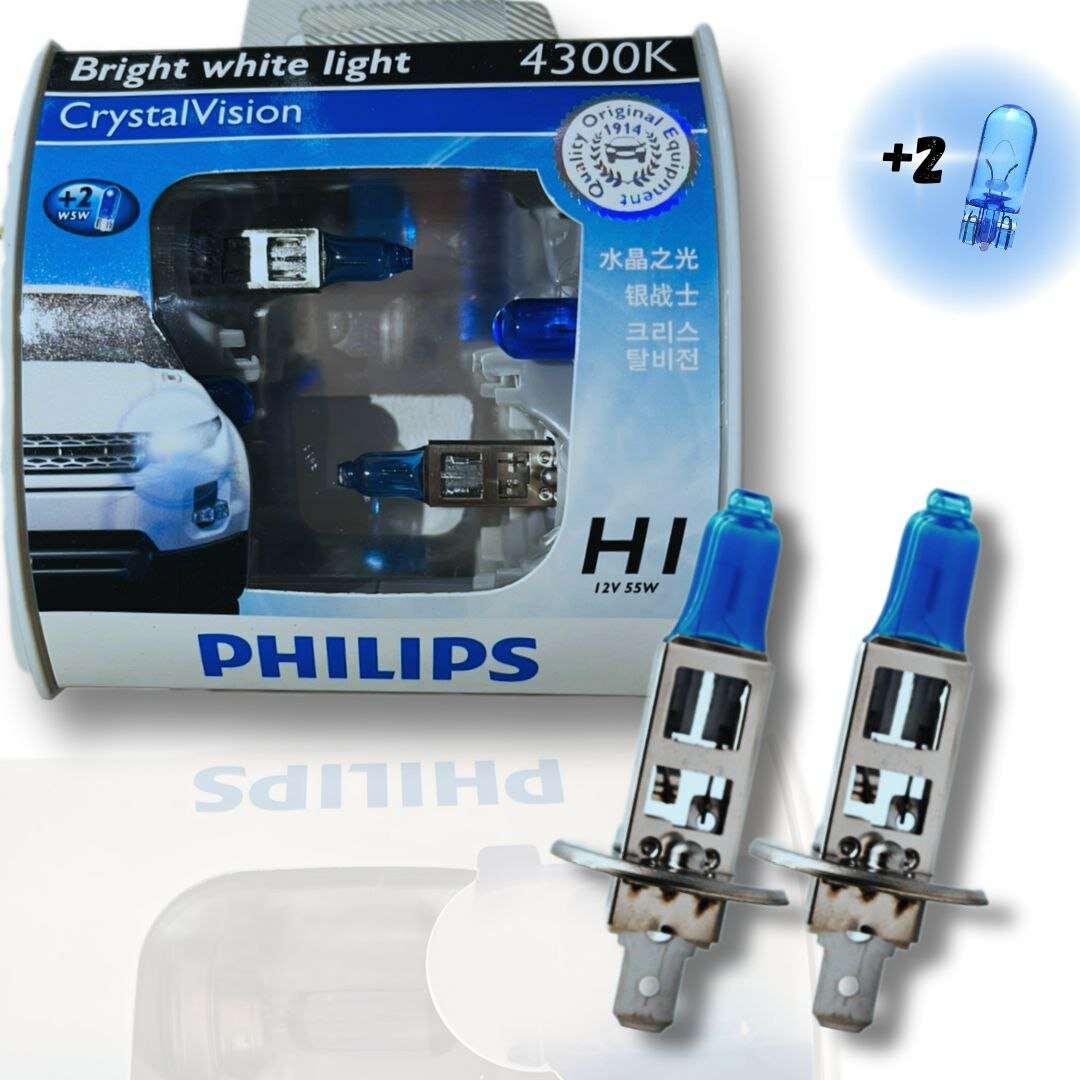 Лампы PHILIPS Crystal Vision H1 12V + 2 шт. W5W (Комплект -2 шт.) PHILIPS-12258CVSM
