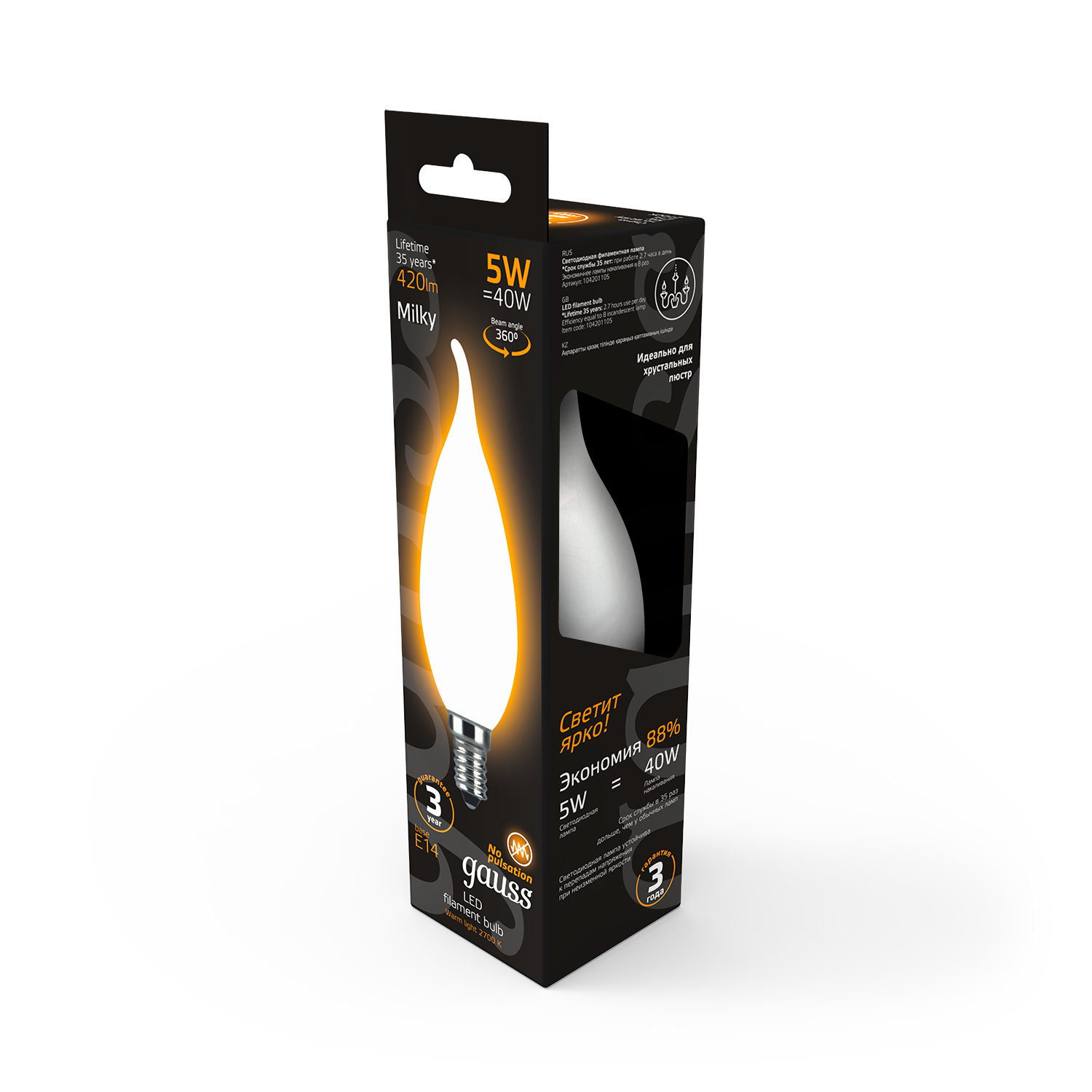 СохранитьСветодиодная лампа Gauss LED Filament Candle Tailed OPAL E14 5W 2700К (упаковка 10 шт) интересное: