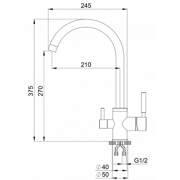 Кухонный смеситель высокий, с краном под питьевую воду GRANULA GR-2168 классик