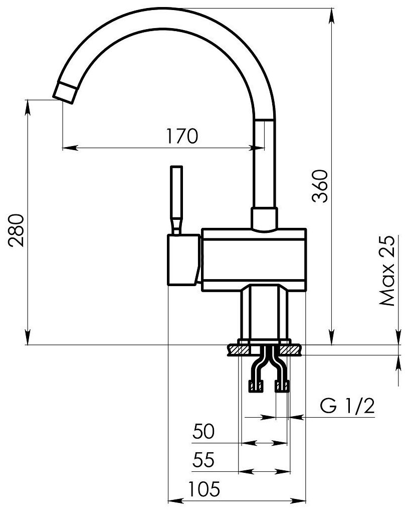 | Высота излива | 280 мм |