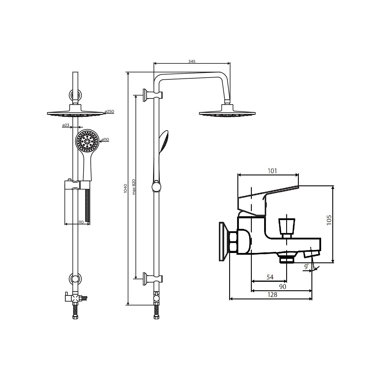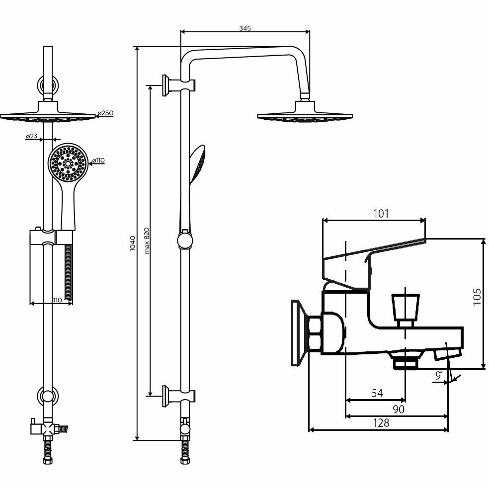 | Дополнительная информация | диаметр лейки - 110 мм, диаметр верхнего душа - 250 мм |