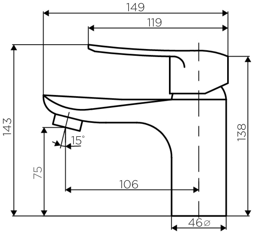 | Длина излива | 106 мм |