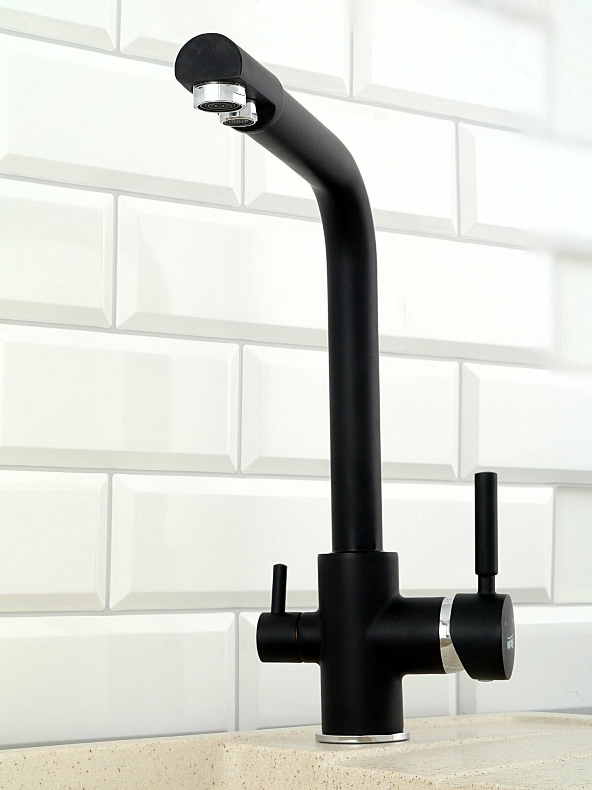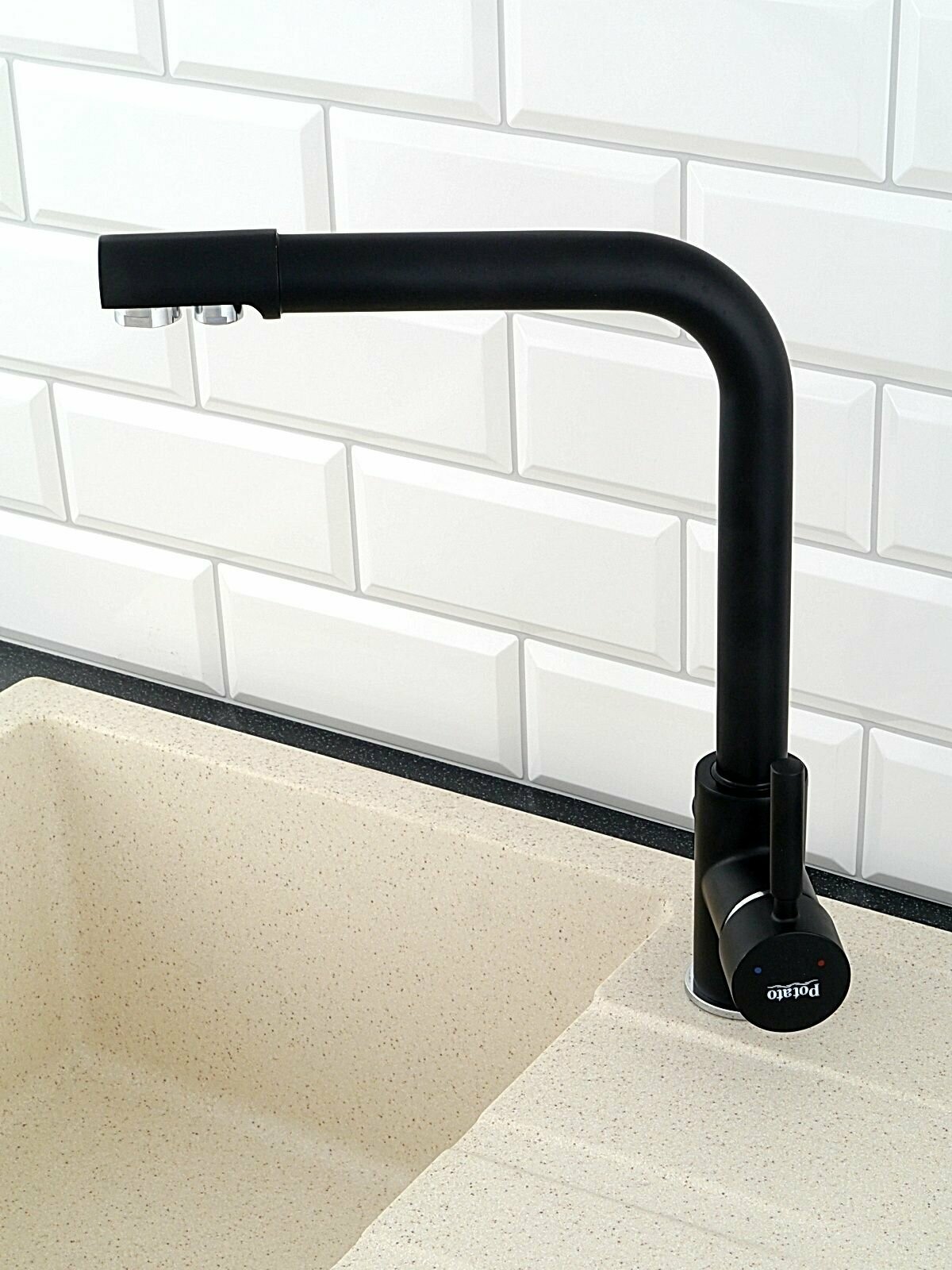 Смеситель на кухню Potato P4498-6 с краном для фильтрованной воды, картридж 35 мм, чёрный, крепление гайка интересное: