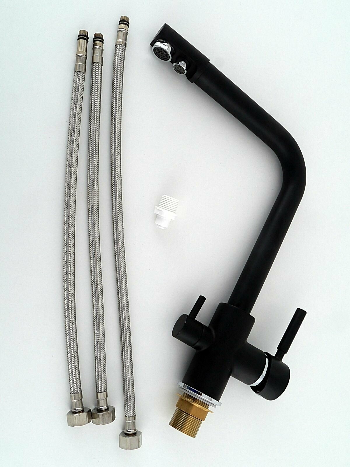 Купить Смеситель на кухню Potato P4498-6 с краном для фильтрованной воды, картридж 35 мм, чёрный, крепление гайка