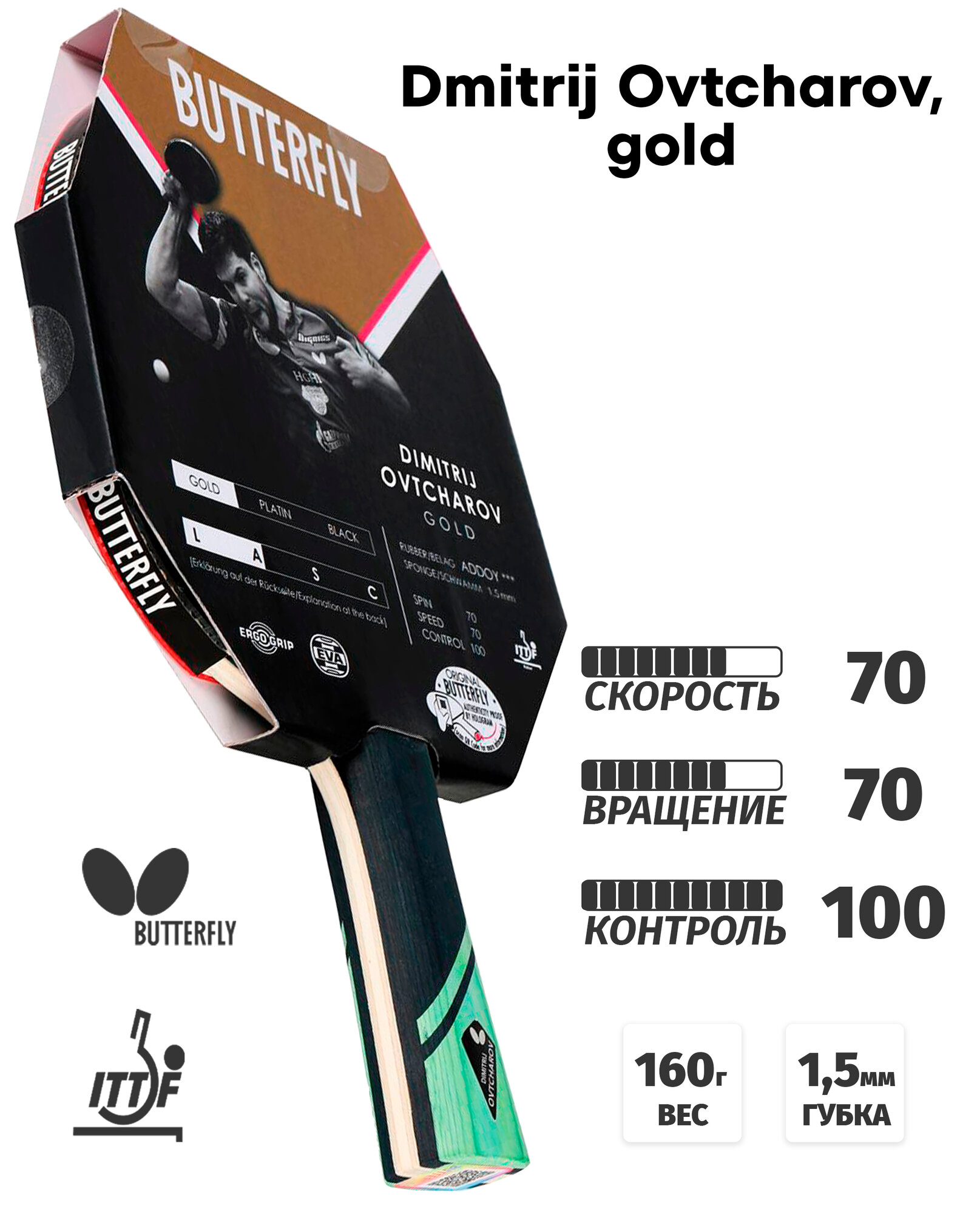 Купить Ракетка для настольного тенниса Butterfly Dmitrij Ovtcharov, gold