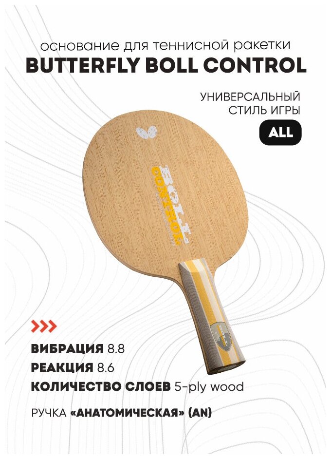 Основание ракетки для настольного тенниса Butterfly Boll Control, тип ручки AN интересное: