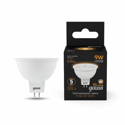 Светодиодная лампа Gauss MR16 9W 830lm 3000K GU5.3 LED (упак 10шт)