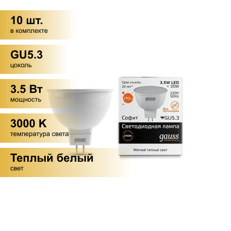 Упаковка ламп LED GAUSS GU5.3, спот, 3.5Вт, MR16, 10 шт. [13514]