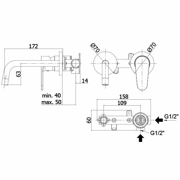 Встраиваемый в стену смеситель для раковины Paffoni Green, арт. GR101CR70, с внутренней частью
